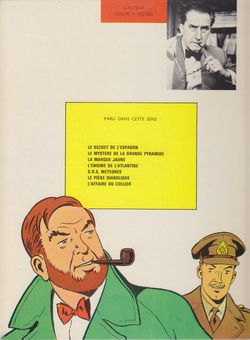 remarques: | album Lombard, 1972, 64 pages, édition belge, 4ème plat au portrait Jacobs, dernier titre l'affaire du collier pages de garde aux portraits bleu/blanc résumé >> voir l'édition originale état TBE, pas de point Tintin, côte BDM en BE Euros 40.- Annexe - couvertures de l'ablum 1972 - couverture de l'édition pirate du piège diabolique - Agès de la Roche, seule figure féminine dans les 7 premièrs albums de la série - une vision futuriste de l'an 5061 - affiche signée Exem de l'exposition Drozophile 1996 par Christian Humbert-Droz à Carouge/Genève |