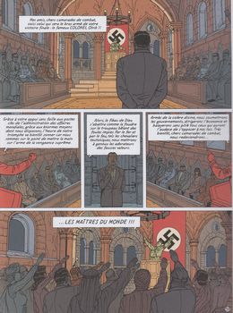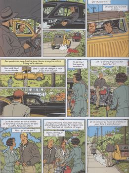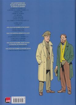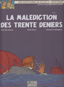 remarques: | édition originale novembre 2009, 56 pages sous-titre: le manuscrit de Nicodemus n.b. René Sterne avait pris la succession de Benoit comme dessinateur des aventures de Blake et Mortimer, malheureusement peu de temps après, Sterne meurt subitement en 2006 et ce sera son épouse qui finira le graphisme assistée de deux collègues de Van Hamme - suite à un tremblement de terre au Péloponnèse (zone sismique de Magne) un jeune berger découvre une crypte ancienne - au pénitencier de Jacksonville où Olrik purge sa peine après l'épisode de "l'étrange rendez-vous", des inconnus organisent son évasion par hélicoptères - le FBI demande l'aide de Blake pour retrouver les traces d'Olrik alors que Mortimer est invité à participer à des recherches archéologiques en Grèce - Olrik se réveille sur le yacht "Arax" et retrouve son complice Jack, le tueur de la grande pyramide, c'est l'homme d'affaire Beloukian (quelque ressemblance avec Onassis) qui a fait évader Olrik pour mettre en branle un grand projet >> p. 10 Olrik et son fume-cigarette ou porte-cigarette qui peut aussi être un étui pour contenir des cigarettes - de son côté, Mortimer est réceptionné à l'aéroport d'Athènes par Eleni Philippidès, nièce et assistante du professeur Markopoulos >> p. 11 Mortimer qui a troqué son vieux manteau de la marque jaune contre un chapeau et un imperméable plus moderne qui lui tombe presque jusqu'aux pieds >> p. 12 et déjà la petite 2 CV Citroen d'Eleni est poursuivi par une Lincoln noire - puis Mortimer, arrivé chez le prof. Markopoulos, assiste à un cambriolage, reprend la moto du fiancé d'Eleni pour rattraper la Lincoln et récupérer un coffret qui ne contient qu'un denier d'argent à l'effigie de Tiberius Caesar Augustus (mais quel denier) - entrée en scène de l'inspecteur Kamantis (similitude avec l'inspecteur Kendall) pour les besoins de l'enquête - entretemps au FBI, Blake avec Calloway, chef de service et la jeune indienne Jessie Wingo (une ancienne connaissance) réussissent à identifier l'auteur de l'évasion d'Olrik: l'armateur arménien Beloukian (en fait l'ancien Standartenführer SS Rainer von Stahl qui aurait bénéficié du trésor nazi pour s'enrichir) >> p. 20 un bélinographe = appareil permettant la transmission à distance d'images fixes, notamment de photographies (on est alors en 1955 et le telex n'est pas encore d'actualité) >> p. 22 la question à cinq dollars (l'expression est de l'époque, actuellement ce serait plutôt bon marché) >> p. 23 le rocher de Gibraltar et Olrik dessiné de façe et de profil >> p. 24/25 l'histoire du reliquaire (coffret) que recherche Markopoulos, tout comme d'ailleurs Beloukian avec Olrik, = symbole de puissance = un genre de Graal - mention aussi de Judas Iscariote qui ne serait pas mort pendu (la corde ayant cédé), mais qui erra autour de la Méditerranée et qui fut recueilli par un groupe de chrétiens sur une île isolée - à sa mort, il fut enterré avec ses 30 deniers, mais le jeune chrétien qui devait lui préparer une sépulture n'a pas pu s'empêcher de garder pour lui un denier et ce serait ainsi attiré la malédiction de Dieu - Beloukian, lui, pense que ce reliquaire pourrait avec les 30 deniers pourrait devenir une arme puissante qui le ferait devenir maître du monde et du mal, mais pour retrouver l'île, il faut trouver le manuscrit de Nicodemus qui a consigné par écrit l'histoire de ce denier >> p. 29 le fameux denier ou statère - mais à Athènes, Mortimer est déjà agressé par Kostas, un homme de main de Beloukian >> p. 33 la bousculade des clients de l'hôtel réveillés en pleine nuit par un incendie factice >> p. 34 Mortimer sauvé par sa pantoufle >> p. 37 étude sur Judas Iscariote qui aurait vendu Jesus par dépit, car Jesus prêchait la paix alors que Judas étant zélote (homme du couteau) aurait voulu que Jesus appelle à la rebellion armée contre les envahisseurs romains >> p. 39 le congrès nazi dans un château grec orchestré par Beloukian auquel assiste Olrik - et en recherchant le manuscrit de Nicodemus, Mortimer parvient à reprendre la partie principale du manuscrit dérobée par Olrik, déguisé en pope orthodoxe, à un jeune berger qui l'avait gardé pour le revendre - l'identité de l'île est découverte, c'est l'île de Syrenios, mais peu après nos amis tombent dans le piège dressé par Beloukian et Olrik - le professeur Markopoulos et sa nièce sont pris en otage alors que Mortimer est abandonné par Olrik sur un dinghy sans rame ni provision d'eau en plein milieu de la Méditerranée >> une histoire extravagante mais basée sur des éléments historiques, un récit également bien documenté avec un bon développement et un graphisme par Sterne qui garde un certain charme annexes - 1er et 4ème plat de l'album EO - détail de vignette - deux pages extraites de l'album - 4ème plat et page de garde de réédition (2014) pour bibliophiles, avec la même couverture que l'album EO Information - la malédiction des trente deniers est une histoire scénarisée par Jean Van Hamme et dessinée par René Sterne, Chantal De Spiegeleer et Antoine Aubin - l’intrigue se situe en Grèce et tourne autour de Judas Iscariote, l’apôtre qui céda à la tentation de livrer Jésus à ses détracteurs - l'aventure commence par l'évasion d'Olrik, détenu dans un pénitencier américain à la suite de sa capture dans l'étrange rendez-vous. - l'album a été annoncé peu de temps après la sortie de l'étrange rendez-vous, en 2001; il devait à l'origine être dessiné par Ted Benoit (déjà auteur de deux albums de la série) et sortir après le diptyque des sarcophages du 6ème continent réalisé par l'autre équipe d'auteurs travaillant sur la série - après le désistement de Ted Benoit, plus très enthousiaste à l'idée de tenir un projet de si longue haleine (il avait mis 5 ans à terminer l'étrange rendez-vous, et la réalisation d'un diptyque allait don