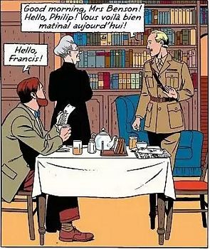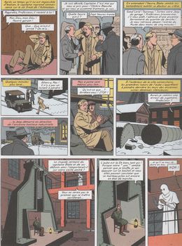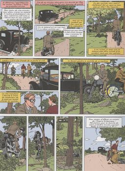remarques: | édition originale novembre 2012, 64 pages - Berkshire 1919, un homme est enlevé par Alister Lawless, membre des services secrets britanniques, cet homme, c'est le colonel Lawrence d'Arabie qui rentré d'Arabie aurait écrit un rapport négatif sur son gouvernement qui n'honore pas sa promesse envers la nation arabe - on lui demande de détruire ou de corriger son rapport sous peine de sanctions - 35 ans plus tard (1954), un vol est commis au musée Ashmolean à Oxford où Mortimer est attendu pour un séminaire >> p. 7 Nasir vient d'être nommé aux renseignements indiens sous les recommendations du capitaine Blake qui souhaite à Nasir un bon début après ses déboires avec la marque jaune n.b. ce qui situe ce récit juste avant celui des deux tomes des sarcophages du 6ème continent où Nasir est déjà actif dans les renseignements indiens n.b. Ashmolean museum - l’Ashmolean Museum, situé à Oxford est le premier musée universitaire au monde, conçu par l'architecte Charles Robert Cockerell qui l'a dessiné dans un style néoclassique (1845) - un premier bâtiment est ouvert le 24 mai 1683 pour abriter les collections données par Elias Ashmole à l'université d'Oxford: monnaies antiques, livres, gravures, spécimens géologiques et zoologiques, parmi lesquels le corps empaillé du dernier dodo que l'Europe ait connu - par la suite, les collections changent de site et celui-ci est utilisé par l'équipe du Oxford English Dictionary - depuis 1935, le bâtiment est un musée d'histoire des sciences, il accueille notamment les instruments scientifiques donnés par Lewis Evans à l'université d'Oxford, parmi lesquels la plus grande collection d'astrolabes au monde, eclectisme = qui s'intéresse à tous les domaines, styles du passé, etc - rencontre avec Lisa Pantry, assistante du prof. Diging, directeur du musée et >> p. 8 sa Bentley spécial décapotable en pleine hiver qui conduit Mortimer au musée où il apprend qu'un vol vient d'être effectué à noter: Mortimer porte encore son vieux manteau de la marque jaune mais remis à neuf, il ne portera son nouveau manteau que dans l'album "la malédiction des 30 deniers" >> p. 10 dans le musée, Mortimer admire le costume arabe de Lawrence et omet déjà des doutes sur le violon volé >> p. 13 alors que Blake assiste aux funérailles de lord Pitchwick, ami d'université de Blake qui possédait un violon semblable à celui qui avait été volé au musée Ashmolean - rencontre aussi avec deux autres amis qui ne se parlent plus entre eux: lord Davlon et lord Bowmore, Blake apprend que lord Pitchwick aurait été assassiné - un deuxième vol est effectué au musée, un vol si étrange que Mortimer fait appel à Blake, entretemps un autre lord se fait assassiner: lord Toddle >> p. 26 de curieux échanges de tirs >> p. 32 Mortimer découvre un mystérieux manuscrit >> p. 36 le dr. Silly du All Souls Psychiatric hospital >> p. 38 les explications de Blake sur la T.E.S.S. = Thomas Edward (Lawrence) Spirit Society, créée pour défendre la mémoire de Lawrence d'Arabie, composée de 5 lords dont Blake est le cinquième lord de cette société secrète - au début de son service au MI5, Blake a assisté à l'assassinat camouflé en accident de Lawrence en moto, organisé par le supérieur directe de Blake: Alister Lawless - au nom de la TESS, Blake l'a dénoncé et Lawless a été arrêté, mais peu après il s'est suicidé dans sa cellule, alors que les cinq lords restaient en possession des manuscrits de Lawrence pour les publier si nécessaire, chacun ayant caché son morceau de manuscrit différemment et secrètement - la suite de l'intrigue découvrira que ce sont les deux enfants de Lawless (John et Lisa) qui voudront venger leur père tout en récupérant les fameux manuscrits de Lawrence - ils iront jusqu'à assassiner 4 lords de la Spirit Society (seul Blake survivra) pour obtenir de chacun d'eux les renseignements où étaient cachés les manuscrits - après une enquête serrée, Blake et Mortimer démasqueront les coupables: Lisa Pantry et Alfred Clayton, frère de Lisa, engagé par Lisa au musée camouflé en simple d'esprit >> p. 8, 36, 39 et 44 la Morgan décapotable de lord Davlon et la Bentley décapotable du professeur Diging ainsi que p. 61 Blake et Mortimer en moto-sidecar, tous deux roulant à ciel ouvert en pleine hiver - décidément, on aime rouler à l'air libre dans ce récit - on remarquera aussi qu'aucune scéne se déroule dans des souterrains et qu'il n'y a pour une fois, il n'y aura aucune apparition d'Olrik >>> une intrigue à l'Agatha Christie, plutôt complexe, mais assez bien imaginée, on est loin des récits fantastiques de Jacobs, quant à la théorie de l'assassinat-accident de Lawrence d'Arabie, cela reste dans la mesure du possible mais non confirmé - doté d’atouts certains, cet album soigné peine toutefois à enthousiasmer (trop de récitatifs), mais il nous donne au moins plusieurs informations sur l'origine du colonel Blake, son parcours et finalement son engagement dans le MI5 - et le graphisme de Juillard reste respectable à noter: des pages de garde qui comportent uniquement des bustes de Lawrence avec cape arabe sauf une sans cape, mais avec lunettes (?) annexes - couverture de l'album EO - ex libris joint à l'album - deux pages extraites de l'album - le trio de 99 Park Lane - couverture de l'album à l'italienne (2012) - couverture no 62 avec la Morgan des cinq lords tiré du fascicule voitures et véhicules Blake&Mortimer - essai de couverture par A. Juillard (2014) tiré de BD Zoom (mais qui n'a guère de similitude avec les 5 lords, plutôt avec le bâton de Plutarque) - figurines de Blake et Mortimer - page de garde aux bustes de T.-E. Lawrence dont l'un curieusement avec lunettes Information - Yves Sente et André Juillard comblent les coins d'ombre de la vie de l'officier et écrivain britannique Thomas-Edward Lawrence, dit Lawrence d'Arabie - ils mettent en scène