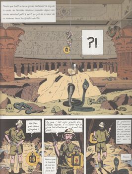 remarques: | présentation cartonné forte et pages au papier épais, édition de luxe, page de garde: le living room de Duncan Scott l'action se situe à la fin du XIXème siècle, à l'époque de l'Empire colonial britannique les deux personnages principaux sont des aventuriers: le premier Scott est un éminent archéologue et écrivain écossais, le second Hasting est un ancien officier de la cavalerie anglaise, héros des guerres coloniales. les deux compères vont être emportés dans une terrifiante machination où le fils de Scott, Gavin, va être enlevé suite à la découverte par son père d'un mystérieux temple égyptien ayant renfermé une monstrueuse divinité venue d'un autre monde... l'histoire va conduire Scott & Hasting de l'Egypte à l'Ecosse en passant par Londres, le tout parsemé de cadavres et d'étranges rencontres Le Caire, 1895, le prof. Duncan Scott et son serviteur Khémal sur l'île de Philae mettent à jour un ancien temple, vieux de 15'000 ans, sous le temple actuel >> p. 7 l'arrivée de Scott dans la salle des serpents il y découvre le tombeau de Raskhenotep, le maudit mais le sarcophage est vide, par contre Scott y découvre deux pierres phosphorescentes 3 mois plus tard en Ecosse, un highlander est assassiné mystérieusement et 3 jours plus tard à Londres, une calèche macabre décharge le cadavre de l'highlander aux pieds de Scott et de son ami Hasting >> p, 17 exemples des jurons de Scott, des jurons écossais en l'occurence: "par tous les saints de l'Ecosse ou par la sainte barbe de Robert Bruce" au large de l'île de Skye, un bateau de pêcheurs se fait aborder par un ancien navire de guerre bondé de pirates squelettiques à Aberdeen, chez Wendy Duncan, épouse de Scott, leur fils Gavin, âgé de cinq ans, est kidnappé par un genre de gorille les explications de Scott sur le mystère de Raskhenotep, ce serait une civilisation pré-égyptienne qui aurait amené les égyptiens à un haut degré de civilisation (éventuellement des extra-terrestres) >> p. 29 voyage en Ecosse et éloge de l'Ecosse avec liste des manoirs écossais les plus connus arrivée à Glendhu castle, château des Duncan de père en fils, rencontre avec l'inspecteur Flannagan (qui ressemble beaucoup à l'inspecteur Harry interprété par Clint Eastwood), un ancien ami de Scott qui enquête sur l'enlèvement du jeune Gavin >> p. 34 dissertation sur la cuisine française qui est d'une finesse extraordinaire ce qui est étonnant quand on connait la lourdeur de ce peuple de soudards >> p. 35 en route pour les Grampians en habit de travail et autres considérations vestimentaires >> p. 38 les écossais: des sauvages en jupettes (dixit Hasting) depuis Kilderness, nos deux amis embarquent sur un clipper de contrebandiers pour se rendre sur l'île de Dunmhor, l'île du diable d'où proviennent les émanations mystérieusement fantastiques >> p. 42 des considérations culinaires avant le départ pour Dunmhor: l'aggamugie = haggis de poisson et le broth = soupe de tête de mouton avec de l'orge n.b. recette du haggis: c'est de la panse de brebis farcie avec un émincé de coeur de foie, de mou, le tout dans une sauce à base d'oignons et de farine, il n'y a rien de meilleur dans ce bas monde (dixit Scott) >> un album genre fantastique, un peu rocambolesque, mais grandement écossais, toutefois ni le texte ni le graphisme ne sont de grande qualité, mais c'est un nouveau genre d'aventure empreint de culture écossaise avec l'éloge de l'Ecosse (touristique, culinaire et surtout avec dégustation de whisky) c'est aussi quelque peu la réplique de Sherlock et Watson par Conan Doyle mêlé à des récits de R.-L. Stevenson |