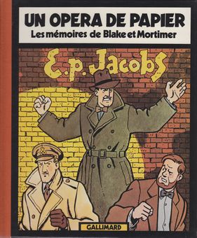 remarques: | un opéra de papier ou les mémoires de Blake et Mortimer (mais plutôt les mémoires de l'auteur), livre N&B avec quelques pages couleur 1/ considérations personnelles - l'enfance de Jacobs né le 30.3.1904 à Bruxelles, d'abord partagé entre la musique et le dessin ainsi que le théâtre, très intéressé par les leçons d'histoire durant lesquelles se développent ses talents de dessinateurs, prend connaissance avec la bande dessinée en lisant les illustrés l'Epatant, l'Intrépide, le Petit Illustré, Semaine de Suzette (curieusement le Petit Vingtième n'est pas mentionné) avec ses dessinateurs favoris Benjamin, Rabier, Raffin, Le Rallic, Job et surtout George Omry dont Jacobs apprécie le côté historique - débuts d'amitié (déjà en 1916) avec son "vieil" ami: Jacques Melkebeke avec qui Jacobs partage ses passions, admirateur du théâtre lyrique avec Faust (féérie du spectacle), après quelques périodes comme dessinateur (de catalogue et du publicité), Jacobs fait l'apprentissage de chanteur d'opéra (baryton), - il découvre le mystère de Faust en jouant sur la scène, c'est pour cela qu'il sera surnommé "le dessinateur à voix" par Hergé - au début de la guerre en 1940, pour survivre, Jacobs abandonne son côté chanteur d'opéra pour commencer une carrière de dessinateur de bande dessinée, d'abord dans Bravo avec des illustrations de contes fantastiques et féériques, puis en reprenant la série de Flash Gordon (Gordon l'Intrépide), enfin en créant le récit du rayon U (1942) - rencontre avec Hergé et collaboration avec lui le 1.1.1944 pour remodeler les albums de Tintin et surtout pour leur coloriage dans lequel Jacobs excelle - 26.9.1946 parution du Journal Tintin belge avec le team Hergé, Laudy et Cuvelier à qui s'ajoutera un peu plus tard Le Rallic - Jacobs a 40 ans, originalement, Jacobs avait concocté un récit historique (Roland le Hardi), mais comme ses compères avaient déjà des scénarios historiques, Jacobs fut prié de créer une histoire contemporaine réaliste et ce fut le secret de l'espadon - impressions sur la création d'une série de bande dessinée: 1) à la base, il faut une idée (tirée d'un évènement ou d'une autre chose) 2/ le synopsis (bref résumé) 3) la documentation 4/ le scénario 5/ le titre du récit 6/ le découpage (nombre de pages, de cases, des phylactères, petc) avec a) l'ébauche et b) l'épuré 7/ le texte (commentaires, dialogues, onomatopées) 8/ les décors (avec souvent visite des lieux) 9/ brouillon grossier 10/ brouillon épuré 11/ original à "l'encre bleue" (planche de 30/40 cm) 12/ offset (à la grandeur de la page du journal) 13/ coloriage, généralement en trichromie = trois couleurs fondamentales (bleu, rouge, jaune) - la science-fiction pour Jacobs, c'est une préfiguration romancée des réalités scientifiques de demain, Jacobs ne veut pas faire du space-opera = western de science fiction (présent toutefois quelque peu dans l'énigme de l'Atlantide), ni de l'heroïc-fantasy, mais penche plutôt pour le roman scientifique ou mystérieux (genre H.G. Wells ou Jules Verne) 2/ les personnages - sir Philip-Edgar-Angus Mortimer Bart, sujet anglais d'origine écossaise avec sa mère lady Eileen-Hunter of Pitlochry, étude universitaire (B.S.C. bachelor of sciences = Baccalaureus Scientiae), professeur en physique nucléaire, spécialiste aussi en biologie moléculaire (structure fine de la matière), chercheur humaniste, homme d'action, jovial et sportif (pratique la boxe, le judo et le karate), franc, loyal mais impulsif, aime le whisky de malt (préférence Cardhu), fumeur de pipe, porte la barbe mais pas la moustache, - Mortimer = mortuo marii, analogie avec Mortemart (croisade) modèle = Jacques Melkebeke, vieil ami de Jacobs - colonel Francis-Percy Blake sujet anglais, né au pays de Galles, d'origine galloise et écossaise, capitaine de la R.A.F. actuellement en poste au services secrets britanniques, le MI5, Blake personnifie le flegme britannique, il est plus prudent et plus réfléchi que Mortimer, porte la moustache,mais sans la barbe - origine de Blake (peut'être du pirate Black Beard), en fait il est colonel mais on continue à l'appeler capitaine suite à ses origines, Blake est le complément de Mortimer, il est aussi fumeur de pipe et inspiré du dessinateur Jacques Laudy (grand admirateur de l'Ecosse) - colonel Olrik (origine voir aussi >> le bâton de Plutarque), peut'être d'origine allemande (Ulrich von Hohenstauffen) suite à l'aspect de son uniforme ou d'origine balte suite à son pseudonyme Olrik, mais sa vraie origine reste un mystère - n'a pas de surnom, dangereux aventurier, courageux, équivalent à Mortimer qu'il apprécie comme adversaire n'est toutefois pas un gentleman, fier, intelligent, désinvolte, dénué de tout scrupule, dominateur, souverain, mépris de la société qui l'entoure, personnification de la lutte entre le bien et le mal, fume un porte-cigarette de luxe, inspiré souvent des traits de Jacobs lui-même et peut'être aussi de l'acteur Eric von Stroheim - autres personnages (>> voir aussi CBD no 30 Jacobs) les gentils: Ahmed Nasir, cheikh Abdel Razek, prince Icare, le prof Grossgrabenstein (seul personnage humoristique dans les aventures de Blake et Mortimer), Ahmed Rassim Bey, dr Focas, prof. Akira Sato, commissaires Pradier, Kendall et Kamal, les chauffeurs de taxi Dick et Ernest, le professeur Labrousse les méchants: Basam Damdu, Abdul le pleutre, Razul le Bezendjas, dr Sun Fo, le capitaine Li, Sharkey (brute bête par excellence), Sadi et son chien, Magon le traître, Tlolac empereur des barbares, Duranton le joaillier, Krishma le suprême, le coréen Kim, le seigneur Guy de la Roche, les docteurs Jonathan Septimus et Miloch Georgevitch (la science au service du mal) >> à noter que les méchants sont plus nombreux que les gentils (15 contre 13), seule femme de la saga: Agnès de la Roche 3/ les albums de Blake et Mortimer (assez bon