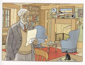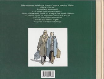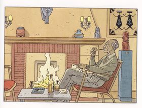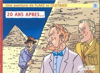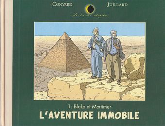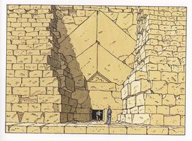remarques: | - Blake et Mortimer retraités ((Blake qui a pris un coup de vieux réside à Londres alors que Mortimer, qui se porte encore très bien malgré son nez de poivrot, réside à Graigallan Lodge en Ecosse - les deux amis recoivent un curieux message portant trait au mystère (final) de la grande pyramide - la lettre de Saint James Temple, le club écossais de Londres, contenant le message d'Egypte qui provient en fait de l'Initié, le cheikh Abdel Razek, arrivé à l'heure de sa mort et qui veut délivrer Blake et Mortimer de l'Interdit - entretemps, les deux amis ont fait le même rêve: retrouver le cheikh Abdel Razek et retourner à l'intérieur de la grande pyramide grâce à la fameuse bague donnée en son temps à Mortimer par le cheikh - et lors d'un autre rêve, celui-ci dans la chambre d'Horus, le mystère leur est révélé: le dieu Akhnaton était une femme et le cheikh Abdel Razek son amant et par Abdel Razek, nos deux amis sont délivrés de l'interdit qui fermait leur mémoire (et Blake reçoit aussi la bague du souvenir) à noter, les meilleures planches de l'album (en annexe dans l'ordre): >> p. 3 le retraité Blake >> p. 7 le retraité Mortimer >> p. 15 Oupouat, l'ouvreur de chemins >> p. 17 l'entrée de la grande pyramide >> p. 21 Anubis, le dieu de la nécropole >> un livre-hommage aux célèbres héros de E.P. Jacobs, arrivés au crépuscule de leurs vies - un album consacré à la mémoire, à la vieillesse et à la mort ainsi qu'à la fin d'une aventure non seulement pour les héros mais aussi pour les amateurs de BD ce cette époque - une assez bonne idée, quoique quelque peu démodée mais toujours assez plutôt originale annexes - couverture Ier et 4ème plat - les deux vieux héros - l'entrée de la grande pyramide - couverture parodie pour cet album |