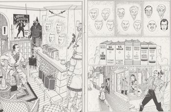 remarques: | édité par le club de Genève/Lombard, EO N&B préface de Rivière admirateur dès son plus jeune âge de Jacobs, créateur avec Glénat des cahiers de la bande dessinée veut rendre hommage à Jacobs avec ce petit fascicule le jeune Edgar déjà pris de passion pour le théâtre joue dans le grenier avec ses marionnettes, 1938 rencontre avec Mortimer = l'ami Jacques, avec Faust un acteur de théâtre et avec Blake = Jacques Laudy >> p. 6 la pièce de théâtre "la malédiction" avec Olrik comme capitaine d'un navire de pirates plus tard, découverte d'un papyrus de textes égyptiens anciens conservés par le prof. Grabenstein et le théâtre du mystère sera institué par le grand prêtre du mystère: le professeur Adrianus qui réussit à hypnotiser Jacobs et à lui faire imaginer ses nombreuses histoires qui remporteront un grand succès > p. 11 la taverne du Bon Vieux Temps >> petit ouvrage sans grande prétention, mais édité pour rendre hommage au grand Jacobs avec de nombreuses références (bien sûr) au théâtre de Sevenoaks (le rendez-vous de Sevenoaks) annexes - couverture Ier et 4ème plat - l'armure du samouraï collectionnée par Jacobs - une illustration de l'album - couverture parodie sur Blake et Mortimer |