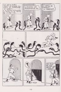 remarques: | archives Hergé, tome 3 (cigares du pharaon, lotus bleu et oreille cassée) préface par l'éditeur pour le tome 3 (le tome 2 est celui de Quick et Flupke) - ces archives sont un témoignage sur l'évolution du style d'Hergé par rapport à la présentation modifiée en couleur + explications (traduction) des inscriptions en chinois dans le lotus bleu titre: petite leçon de chinois à l'usage des lecteurs du lotus bleu A) Tintin, reporter en Orient, 124 planches (ou les cigares du pharaon), album N&B 1934 épisode en trois parties: Egypte, Arabie et Indes, Tintin n'arrivera pas encore en Chine en route pour Shanghai via Port Saïd, rencontre avec le savant loufoque Philemon Siclone et son papyrus de Kih-Oskh, rencontre aussi avec Rastapopoulos apparition des Dupond&Dupont (mentionnés comme X33 et X33bis) >> p. 25 à 29 découverte des cigares avec le signe de Kih-Oskh, prisonnier dans le tombeau égyptien (bien sûr le sarcophage de Jacobini n'est pas encore présent, remplacé par celui du prof. Sauerkraut) l'épisode avec le bateau des trafiquants et surtout avec Siclone comme naufragé est écourté par rapport à l'édition couleur apparition d'Oliveira da Figueira de Lisbonne, commerçant portugais >> p. 35 les portugais sont des gens gais dixit Milou échoué sur la côte d'Arabie rencontre avec le sheik Patash Patra, admirateur de Tintin (il lit cette fois Tintin en Amérique) >> p. 40 Milou fait des vers: un chek shic ou plutôt un chic sheik retrouvailles avec Rastapopoulos qui tourne le film "haine d'Arabe" arrivé à la Mecque, Tintin est engagé de force dans l'armée par le sergent Ibn-Nedjd-Behkr sous le nom arabe de Bah-Bahr (au lieu de Beh-Behr, édit. couleur) Tintin découvre des cigares du pharaon dans le bureau du colonel il est condamné à mort mais ressuscité par les agents X33 et X33bis fuite en avion, atterrissage forçé dans la jungle indienne Tintin y guérit un éléphant et réussit à parler aux éléphants avec une trompette fabriquée sur place connaissance avec un groupe d'européens: - le pasteur Peacock, Mrs et Mr. Snowball, le planteur Bearding, le médecin Lawson et l'écrivain Zlotskwtz retrouvailles avec Philemon Siclone devenu fou par les yeux qui commandent (hypnotisé par un fakir) Zlotskwtz est empoisonné au suc de radjaïdjah, le poison qui rend fou Tintin est lui-même considéré comme fou mais réussit à s'échapper et est sauvé par le maharadjah de Rawhajpoutalah >> p. 91 la remarque de Milou: le chef des fous = le directeur de l'asile Tintin se met à la recherche de la bande des trafiquants d'opium >> p. 111 un épisode inédit: l'attaque des serpents qui ne sera pas repris dans l'album couleur idem pour >> p. 123 Milou qui réussit à éteindre une mèche de dynamite en utilisant un besoin naturel >> p. 124 le charmeur de serpents finalement Tintin capture la bande de trafiquants mais le chef réussit à s'enfuir et trouve la mort dans un précipice sans que son identité soit dévoilé, la suite dans le lotus bleu >> un récit dont la trame commence à devenir plus consistante, à noter que dans l'édition N&B (contrairement à la version couleur), Tintin porte généralement une cravatte avec ses pantalons golf B) Tintin, reporter en Extrême-Orient (le lotus bleu) 124 planches, album N&B 1936 Tintin chez le maharadjah de Rwahajpoutalah la démonstration et l'avertissement du fakir Cipaçalouvishni >> p. 145 page d'humour hergéen l'envoyé chinois de Shanghai >> p. 153-155 critique du racisme et de la politique coloniale l'Occidental Private Club: avec Dawson, chef de la police de la concession et Gibbons, industriel américain >> p. 156 un des plus importants personnages de l'album: le japonais Mitsuhirato (un très vilain personnage) agent secret du Japon et trafiquant d'opium >> p. 163 la bagarre avec trois policiers britanniques (hindous dans l'album couleur) un chinois sauve la vie de Tintin par deux fois Tintin se rend au rendez-vous de Tai Pin Lou le chinois fou qui veut couper la tête à Tintin (Lao Tzeu a dit qu'il faut trouver la voie pour recevoir la vérité) Tintin repart à Bombay, mais sur le bateau il se fait enlever par les "fils du dragon" et leur chef Wang Jen Ghié qui combattent le trafic d'opium >> p. 179 le lotus bleu = nom d'une fumerie d'opium sabotage d'une voie ferrée par Mitsuhirato et le Japon, gardien de l'ordre en Extrême-Orient envoie des troupes en Chine, enlèvement de Tintin à qui on essaie d'inoculer du poison qui rend fou >> p. 191 l'affreux visage de Mitsuhirato Tintin est dénoncé aux autorités japonaises par Mitsuhirato >> p. 200/201 la tournée du général Haranoshi (non nommé dans l'édition couleur) difficultées de Tintin dans la concession internationale de Shanghai >> p. 206/207 le film de la Cosmos Pictures "haine d'Arabe" le professeur Fan-Se-Yeng, spécialiste de la folie >> p. 209 retrouvaille avec Rastapopoulos >> p. 212 Tintin capturé par les deux collègues des deux Dupond(t): Richards et Brown Tintin prisonnier des japonais est condamné à mort mais délivré par Wang Jen Ghié et ses amis >> p. 215 à nouveau une page d'humour hergéen Tintin se rend à Hou Kou sur le Yang Tsé Kiang >> p. 226 Tintin sauve la vie à Tchang Tchong Jen >> p. 227 exposé sur les moeurs chinois entré en scène des deux Dupond(t) qui sont chargés d'arrêter Tintin sur territoire chinois Yamato = complice de Mitsuhirato enlèvement de la famille de Wang Jen Ghié >> p. 250 incident avec le consul de Poldévie capture de Tintin, Robert Rastapopoulos jette le masque Tintin et ses amis seront exécutés par Didi, le fils de Wang Jen Ghié mais Tintin a su déjouer le jeu des bandits >> p. 258 une planche inédite non reprise dans l'édition couleur >> p. 261 accusations de la SDN contre le Japon >> p. 264 happy end, Tchang est recueilli par la famille de Wang et Tintin peut repartir vers de nouvelles aventures et c'est la première fois que Tintin pleure (il pleurera encore 