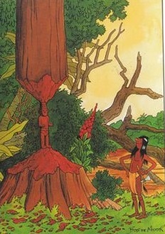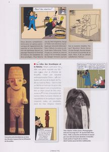 remarques: | 1/ 1935-1937 parution des nouvelles aventures de Tintin dans le petit XXème qui deviendront en album "l'oreille cassée" en France, début du Front Populaire, la Rhénanie est réoccupée par l'Allemagne d'Hitler soulèvement militaire en Espagne par Franco, guerre en Ethiopie, axe Berlin-Rome-Tokyo, jeux olympiques à Berlin 2/ les sources de l'oeuvre le San Theodoros, la guerre du Chaco, les modèles de voitures, d'avions et de navires fétiche précolombien et non amazonien (rapporté en 1935 du Pérou par l'explorateur belge Lavachery et donation au musée ethnographique de Bruxelles) les arumbayas et les chasseurs de têtes 3/ les secrets d'une création deux erreurs: l'échiquier mal tourné et les bananes qui poussent vers le bas une autre non mentionnée: les volants à droite dans les voitures, le langage des arumbayas et inventer une aventure dans le même temps qu'on la dessine, reste un tour de force pour Hergé! 4/ les acteurs - un Tintin plutôt malmené dans "l'oreille cassée" et un des rares états lamentables de Tintin dans ses aventures (comme présenté avant d'être fusillé, sous l'effet de l'alcool) - un général Alcazar colérique qui partage le pouvoir avec son rival le général Tapioca (peu apparent dans cette histoire) - Ramon Bada et Alonzo Perez, les deux tueurs + les deux Balthazar - Bazaroff inspiré de Bazil Zaharoff (1849-1936), un personnage qui a bien existé - Mr. Chicklet de l'American Oil, le colonel Diaz dégradé en caporal - Samuel Goldwood (= le milliardaire Goldwyn qui a donné en partie son nom à la Metro Goldwyn Mayer) - les deux Dupont(d) mais brièvement, Pablo la terreur de Las Dopicos - Ridgewell l'explorateur, un vrai anglais - Jules le gardien du musée et bien sûr le perroquet 5/ les couvertures de l'oreille cassée dans le Petit XXème avec quelques couvertures très soignées et inédites en album 6/ annonces et inédits en album - la fin de l'épisode avec la vignette "dieu ait son âme" (au lieu des petits diables) suite à une demande du très catholique périodique "Coeurs Vaillants" - au début de l'épisode, le cauchemar de Tintin n'est plus repris dans l'album couleur (7 vignettes) - l'épisode est appelé "les nouvelles aventures de Tintin" dans le petit XXème, puis l'oreille cassée en album et Tintin chez les arumbayas en film fixe 7/ résumé de l'oreille cassée >> voir album B8 8/ Hergé, chronologie 1935-1937 - avec l'oreille cassée, publication de Jo et Zette pour Coeurs Vaillants et en plus Quick et Flupke (qui paraîtront moins souvent), Hergé doit alors dessiner 3 séries par semaine en même temps! - 19.9.1936 publication du lotus bleu dans l'Echo Illustré de Genève avec comme titre "Tintin en Orient" - 7.1.1937 Tintin et Milou sont intégrés sur la couverture du Petit XXème - les quatre images "hors texte" pour les albums N&B du lotus bleu - les couvertures du Petit XXème sur Jo et Zette ainsi que Quick et Flupke n.b. Hergé reçoit alors 15% du prix de vente pour chaque album vendu 9/ les autres activités - nombreux articles dans la presse ou ailleurs tels la boite aux lettres, les actualités, le coin des timbres, les scènes de théâtre concernant Tintin (à découper), les jeux divers, concours, publicité, etc - les films fixes qui reproduisent les aventures de Tintin case par case - illustrations pour contes et autres articles tel "la légende d'Albert Ier" 10/ dossier collectionneurs (illustrations des albums) - liste de prix des albums de collection (premiers albums N&B et couleur), côtes de 1979 à 2010 - les albums N&B A2 (1937), A15 (1941) et A18 (1942) en partie avec hors texte couleur - les premiers albums couleur dont le A20 (1943) estimé en 2010 à € 2500.- (€ 50.- en 1979) et la série des B (B1 à B35) avec les pages de garde en bleu foncé qui dureront jusqu'en 1957 - les 4ème plats (différences entre les albums N&B avec mention "du même auteur" et les albums couleurs "collection Tintin") - les 4ème plats B1 avec le pull deux couleurs de Haddock (1946) - les Ier plats des albums N&B avec petite image collée et grande image - éditions en langue étrangère: finlandais, roumain (urecha rupta), turc (kirik kulak), danois (det knuste ore) et luxembourgeois (d'ouer mam krack) titre en allemand: der Arumbaya Fetisch, en anglais: the broken ear - postface p. 23: les hors texte pour l'album N&B de l'oreille cassée >> un album très intéressant, soigné et bien documenté avec des articles et illustrations souvent inédits annexes - couvertures du Petit XXème sur l'oreille cassée - couverture de l'album - information sur le fétiche - un fétiche exceptionnel |