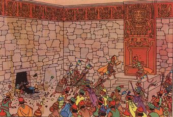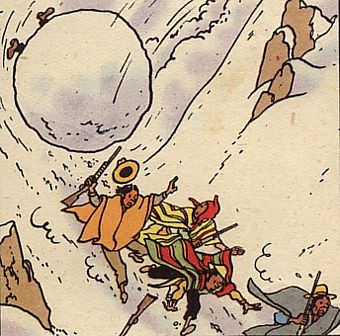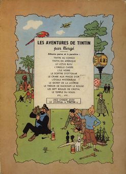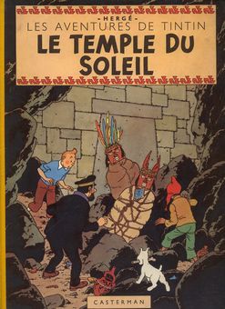 remarques: | première édition couleur, B3, marqué 1949, dos jaune page de titre, titre en noir aux deux symboles inca titre en noir sur première page 4ème plat, temple du soleil prépublication en couleurs dans le Journal Tintin de septembre 1946 à avril 1948, la deuxième partie des 7 boules de cristal sera fusionnée avec le temple du soleil résumé l'action débute à Callao, Pérou dans le bureau du chef de police qui fait déguster à Tintin et Haddock le pisco = la liqueur du pays >> p. 2 Haddock fait déjà la connaissance des lamas "quand lama fâché, lui toujours faire ainsi" >> p. 3 l'arrivée du cargo Pachacamac, les Dupond(t) enquêtent avec l'accord du senor inspector superior >> p. 4 le pavillon de la quarantaine, Dupont(d) et le guano, Tintin décide de se rendre malgré tout sur le Pachacamac mais il est surpris par Chiquito >> p. 9 Haddock qui s'adonne au plaisir de la rame, puis il avertit l'inspector superior qu'on ne doit pas réveiller, Haddock se rabat alors sur les deux Dupond(t) >> p. 10 le réveil fastueux des Dupond(t) sur les traces des ravisseurs de Tournesol, on prend alors place dans le célèbre chemin de fer de la Cordillère des Andes dont le wagon de nos amis a été saboté, >> p. 14/15 la course folle du wagon libéré et le saut vertigineux de Tintin arrivée à Jauga où Tintin prend la défense du petit indio Zorrino qui accepte de les guider jusqu'au repaire des ravisseurs de Tournesol, rendez-vous au pont de l'Inca, Tintin reçoit un talisman pour avoir défendu Zorrino >> p. 21 retrouvaille de Haddock avec les lamas qu'il qualifie de jets d'eaux ambulants nos amis sont agressés lors de la nuit dans un tombeau inca: le chulpa enlèvement de Zorrino, chute d'Haddock Zorrino est délivré mais Milou tombe dans les griffes d'un condor, sauvetage de Milou par un Tintin alpiniste >> p. 28 à 30 la lutte avec le condor la marche continue à travers des cols enneigés et une jungle torride Haddock pris dans une avalanche doit la vie au whisky (il y a un dieu pour les amateurs de whisky, dixit Tintin) >> p. 32 4ème vignette, la chute spectaculaire d'Haddock épisode d'Haddock avec l'ours des Andes, traversée difficile de la forêt vierge avec moustiques, singes-hurleurs, boa, alligators, le tapir-autobus, le fourmilier = Cyrano à 4 pattes selon Haddock >> p. 39 enfin, on arrive à proximité du temple du soleil >> p. 40 le passage de la cascade (un mince rideau d'eau) >> p. 44 le passage secret des anciens incas, les momies incas, la flûte des morts = l'os à musique >> p. 47 arrivée fracassante dans le temple du soleil (jolie vignette) >> p. 48 devant l'Inca, le fils du soleil et devant Huaco alias Chiquito Zorrino sauvé par le talisman donné à Tintin par Huascar, le grand prêtre mais Tintin et Haddock avec Tournesol seront sacrifiés sur un bûcher qui sera enflammé par le dieu soleil ils pourront toutefois choisir l'heure et le jour de leur mort >> p. 52 Tintin découvre une possibilité d'échapper à la mort tandis que les Dupond(t) continuent inlassablement dans le monde leurs recherches sur Tintin à l'aide de la radiesthésie (plusieurs vignettes cocasses) >> p. 56 l'heure du sacrifice, arrivée de Tournesol Tintin implore le Pachacamac, l'astre du jour, pour qu'il fasse annuler le sacrifice (Tintin utilise à cet effet une éclipse de soleil dont, peut'être erreur d'Hergé, car les Incas auraient dû en avoir connaissance de par leur connaissance de l'astronomie) >> p. 59 de joie, Haddock entonne la chanson de Trenet "le soleil a rendez-vous avec la lune" >> p. 60 Tintin et ses amis retrouvent leur liberté, mais Tintin demande aussi à l'Inca de libérer les 7 savants en Europe de leur malédiction et donc de leur sommeil léthargique avec crise nerveuse, l'Inca annule l'envoûtement et le supplice par poupée interposée >> p. 61 dernière rencontre de Tintin avec Zorrino (qui ne reparaîtra plus par la suite) >> p. 62 le trésor des incas et le retour au pays de Tintin qui a promis de ne pas révéler où se trouve le temple du soleil, la vengeance d'Haddock sur les lamas >> un album très intéressant avec de magnifiques illustrations l'album peut'être le plus actif et le plus varié des aventures de Tintin (enquête, poursuite, documentation, archéologie, anciennes civilisations, astronomie, onirisme, etc) annexes - 1er et 4ème plat de l'album - 4 cases mémorables >> un très bel album, au 1er plat bien propre, avec coins piquants, dos jaune complet, 4ème plat et intérieur parfait côté au BDM en BE Euros 850.- Information le temple du Soleil est le quatorzième album de la série de bande dessinée des aventures de Tintin, l'histoire constitue la seconde partie d'un diptyque qui débute avec les sept boules de cristal, elle fait d'abord l'objet d'une prépublication dans le journal Tintin du 26 septembre 1946 au 22 avril 1948, avec pour restriction que les premières pages publiées correspondent à la fin de l'album des sept boules de cristal, même si elles le sont sous le titre "le temple du Soleil" de fait, l'histoire proprement dite du temple du Soleil débute le 19 décembre 1946 il s'agit de la toute première aventure de Tintin à être pré-publiée en couleurs directes dans le journal Tintin tout nouvellement créé, comme pour les sept boules de cristal, sa prépublication connaît des interruptions qui sont liées ici à des épisodes de dépression d'Hergé, enfin la publication sous forme d'album en couleurs se fait seulement en 1949 afin de suivre celle des sept boules de cristal la création du temple du Soleil a lieu dans un contexte de post-libération de la Belgique pour avoir travaillé dans un journal sous direction de collaborateurs à l'Allemagne nazie, Hergé se retrouve au sortir de la Seconde Guerre mondiale sous le coup d'une interdiction de publier, ceci le conduit à ne pouvoir faire paraître son récit que plus de deux ans après sa première partie et cela aura des conséquences sur