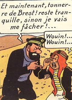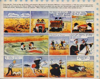 remarques: | édition redessinée en 1971 et adaptée à une actualité plus moderne nom en arabe plus complet sur le Ier plat pages de garde bleu clair aux portraits B40, dos jaune avec titre imprimé 4ème plat, dernier titre: vol 714 pour Sydney >> p. 6 à 18 nombreuses modifications, rivalité entre Ben Kalish Ezab et Bab el Ehr Haïfa devient Khemkhâh, port du Khemed, petit état arabe, Wadesdah garde son nom mais les terroristes juifs et arabes ainsi que l'armée anglaise disparaissent, les marins de la Royal Navy sont remplacés par des soldats arabes >> p. 15 Hergé est plus explicite sur les mystérieux documents, en fait il s'agit d'un trafic de cocaïne Tintin est enlevé par les rebelles de Bab El Ehr >> p. 18 Bab el Behr devient d'abord hilare puis furieux >> p. 35 la Speedol et la compagnie américaine deviennent respectivement Skoil Petroleum et l'Arabex puis plus de changements notables jsqu'à la fin de l'album sauf en page 58, Abdallah est traité par Haddock "d'espèce de petit ornithorynque au lieu d'espèce de petit bachi-bouzouk" résumé et commentaires voir album EO B4 1950 >> un album assez semblable à l'album originale sauf pour les quelques modifications avec des décors mieux soignés, toutefois le coloriage et l'imprimage sont moins bien marqués que dans l'album 1950 n.b. récit et graphisme sont maintenant inspirés de "coke en stock" (1958) annexes - 1er et 4ème plat de l'album - 2 cases mémorables et - un strip provenant de Coeurs Vaillants |