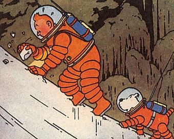 remarques: | ils ont marché sur la lune, de la fiction à la réalité pages de garde = planche d'essai pour le début d'objectif lune avec la page volante "la conquête de la lune" 1/ commentaires sur les albums "lunaires" d'Hergé bon mixage entre la documentation et la technique avec aventure et humour 2/ la documentation d'Hergé sur la fusée lunaire a été conçue avec la participation d'Alexandre Ananoff, spécialiste en astronautique depuis 1927, auteur du livre "l'astronautique", mais aussi avec B. Heuvelmans "l'homme parmi les étoiles", Rousseau "notre amie, la lune" ainsi que Jules Verne, H.G. Wells, Burroughs et bien d'autres >> voir la feuille volante "la conquête de la lune" l'imaginaire jusqu'à Hergé, de 1516 à 1954, par Pierre Couperie n.b. le terme astronautique a été créé par le romancier français Rosny l'Ainé 3/ Hergé aura également bien traité l'aspect humain de la conquête de la lune, pour rappel: - 12.4.1961 Youri Gagarine, premier homme de l'espace sur Vostok 1 (1957 lancement de Spoutnik) - 21.7.1969 Amstrong pose pied sur la lune dans le cadre d'Apollo XI, 20 ans après Tintin (le programme Apollo = 17 missions de 1967 à 1972 avec alunissages lors d'Apollo XI, XII, XIV, XV et XVII) n.b. Hergé a délibérément choisi un pays imaginaire pour lieu de départ de la fusée ce qui lui a permis de ne froisser aucune susceptibilité 4/ comparaisons entre la documentation d'Hergé et l'équipement de la NASA (fusée, laboratoire, poste de pilotage, scaphandre, instruments de mesure, char, habitation, etc) 5/ strip de 4 pages en couleur sur Apollo XII exécuté pour Paris Match en novembre 1969 >> quelques commentaires intéressants et inédits, mais surtout de jolies photos et dessins >> à voir page 7: plan de la lune et zones d'alunissage par Tintin et par le programme Apollo annexes - la remarque d'Hergé sur le 4ème plat de l'album (à force de croire en ses rêves, l'homme en a fait une réalité) - 3 cases mémorables - carte de la lune - pages de garde représentant les planches d'essai 1948, ce premier projet se déroule aux Etats-Unis et ne sera pas réalisé - l'album on a marché sur la lune dédicacé par Hergé aux cosmonautes de chacune des sept missions lunaires Information album on a marché sur la lune, dédicacé par Hergé et par un astronaute de chacune des 7 missions lunaires habitées, album à dos carré imprimé (B34) dédicace paru en 1974: très beau dessin à l’encre bleue représentant Tintin et Milou, adressée à 1/ Buzz Aldrin (mission Apollo 11) = second homme à avoir marché sur la lune, il était le pilote du module lunaire "Eagle", premier engin habité ayant aluni, sa dédicace indique "first moonwalkers after Tintin » (premiers hommes à avoir marché sur la lune après Tintin 2/ Allan Bean (mission Apollo 12) = quatrième homme à avoir marché sur la lune, sa dédicace indique "I might see the footprints of Neil and Buzz, but I’am not sure about Tintin’s" (j’aurais pu voir les traces de pas de Neil et Buzz, mais je ne suis pas sur pour celles de Tintin) 3/ Fred Haise (mission Apollo 13) = pilote du module lunaire pour cette mission avortée, sa dédicace indique "like Tintin before me, we have had problem on our flight to the moon, but we came back safe" (comme Tintin avant moi, nous avons eu des problèmes durant notre vol vers la lune, mais nous sommes revenus sains et saufs) 4/ Edgar Michell (mission Apollo 14) = pilote du module lunaire et sixième homme à avoir marché sur la lune, sa dédicace indique "longest walk on the moon after Tintin's" (la plus longue marche sur la lune après celle de Tintin) 5/ Al Worden (mission Apollo 15) = pilote du module de commande, sa dédicace indique "when returning from the moon, I took the farthest out space walk, including Tintin’s (lors de mon retour sur la terre, j’ai accompli la sortie les deux autres restant pouvant être 6/ Charles Duke (mission Apollo 16) avec sa mention: "the youngest moonwalker after Tintin" (le plus jeune ayant marché sur la lune après Tintin) 7/ Gene Cernan (mission Apollo 17, dernière mission) "I m not sure Tintin was the first moonwalker, but I am sure to be the latest (up to now)" (je ne suis pas certain que Tintin ait été le premier à avoir marché sur la lune, mais je suis certain d'être le dernier... (jusqu'à présent) (n.b. album vendu près de 100'000 Euros) |