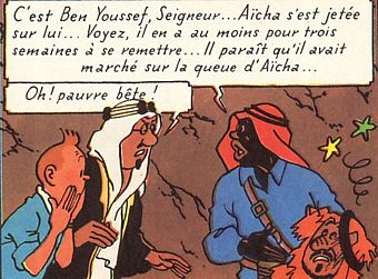 remarques: | première édition couleur, édition française Danel, no 1843, B24, 1958, dos rouge page de titre, titre en noir pages de garde: bleu clair aux portraits (première édition avec les nouvelles pages de garde) 4ème plat coke en stock, Quick et Flupke 1-2-3-4-5-6-7-8- parution dans le journal Tintin 31.10.1956 au 1.1.1958 l'action se passe principalement en Arabie >> p. 1 l'invraisemblable devient vraisemblable, la rencontre avec Alcazar >> p. 3 à la recherche d'Alcazar mais sans succès >> p. 4 1ère ligne, troisième vignette, le verre supplémentaire (non satisfait par l'eau minérale, Haddock commande probablement une bière durant le temps où Tintin va téléphoner) >> p. 5 arrivée d'Abdallah qui s'installe avec son escorte dans le salon de Moulinsart suite à une révolution au Khemed, Haddock ému, mais vite confronté à la réalité "toi pas toucher au fils de mon émir" Hassim dixit >> p. 7 la séance de téléphone au bain >> p. 8/9 Haddock traite Tournesol deux fois de zouave, mais cette fois sans réaction de Tournesol >> p. 9 les Dupond(t) enquêtent pour l'Interpol sur le général Alcazar qui serait mêlé à un trafic d'armes n.b. ce sera la seule apparition des Dupont(d) >> p. 11 apparition de Dawson, ancien chef de la police de la concession de Shanghaï >> p. 14 coup d'état au Khemed, Bal el Ehr renverse Ben Kalish Ezab >> p. 15 Tintin et Haddock partent pour le Khemed, mais sont refoulés à Wadesdah par le régime Bab el Ehr soutenu par les livraisons d'armes de Dawson >> p. 18 atterrissage forçé sur le ventre dans le désert, l'attentat à la bombe déposée dans l'avion Tintin a tort de ne pas prendre Milou plus au sérieux et Tintin peut devenir méchant avec un bon direct de droite >> p. 21 Tintin et Haddock retournent à pied vers Wadesdah >> p. 22 Tintin compte toujours sur le puissant pouvoir de l'alcool pour influençer Haddock (le flacon de rhum) >> p. 23 ils trouvent refuge chez le marchand Oliveira da Figueira tandis que Ben Kalish Ezab s'est réfugié chez Patrash Pacha >> 25/26 Tintin et Haddock déguisés en femmes arabes portant une cruche sur la tête, le juron d'Haddock: espèce de fatma de Prisunic (juron qui sera modifié par la suite), fuite à cheval, Haddock fait de l'équitation la destruction par erreur des deux auto-mitrailleuses la colère de Mull Pacha alias le dr. Müller (île noire) >> p. 28 le repaire de Ben Kalish Ezab (allusion au temple de Petra en Jordanie) les chiens aboient mais la caravane passe explications de l'émir sur l'Arabair qui se livre au trafic d'esclaves querelle de Milou avec le guépard Aïcha le cynisme d'Hergé: "bien mal acquis ne profite jamais "c'est bien vrai" dixit Milou après avoir volé l'os à Aïcha >> p. 31 révélation de l'émir: le milliardaire di Gorgonzola est le chef de l'Arabair et celui qui soutient Bal el Ehr >> p. 32 en route pour la Mecque à bord d'un sambouk l'attaque des mosquitos, Tintin réussit à abattre un avion, mais le sambouk coule et Tintin+ Haddock deviennent naufragés sur un radeau, sauvetage et apparition du pilote lithuanien, Piotr Szut sauvé par le yacht de Di Gorgonzola grâce à des signaux lumineux par miroir >> p. 40 rencontre avec la Castafiore, Harrock'n roll peu après, Tintin et Haddock sont transférés sur le cargo Ramona qui appartient aussi à Di Gorgonzola, réapparition d'Allan Thompson >> p. 42 la question barbante: dors-tu avec la barbe au-dessus ou en-dessous des couvertures? >> p. 42 un incendie se déclanche sur le Ramona, l'équipage s'enfuit en chaloupe, mais Haddock réussit à éteindre les flammes et à prendre le contrôle du cargo libération des pauvres noirs (le coke en stock) >> p. 47 et 50 Haddock parle petit nègre et y ajoute un nouveau juron: espèce de zouave à la noix de coco (décidément zouave est populaire) >> p. 50 le discours d'Haddock aux petits nègres >> p. 51 Di Gorgonzola ordonne à son sous-marin de couler le Ramona >> p. 53 Tintin repère le périscope du sous-marin les efforts d'Haddock pour éviter les torpilles Haddock à la barre, babord = gauche, tribord = droite 2 torpilles sont évitées, la troisième va réussir lorsque le uss "Los Angeles" menace de couler le sous-marin >> p. 58 le plongeur du sous-marin porteur d'une mine destinée au Ramona échoue dans sa mission et p. 59 Di Gorgonzola alias Rastapopoulos réussit à prendre la fuite grâce à un sous-marin de poche >> p. 61 fin de l'épisode, Tournesol invente les patins à moteur, alors que Nestor est devenu bien malade, départ d'Abdallah non sans laisser un petit souvenir à Haddock et apparition de Séraphin Lampion qui organise un rally automobile dans le parc de Moulinsart >> c'est un peu la continuation du "pays de l'or noir", enquête, révolution, trafic d'armes, esclavage, aventures maritimes, etc l'action est un peu moins passionnante que les albums précédents et l'humour n'est plus aussi fin, mais cela reste quand même un bon épisode avec un défilé d'anciennes connaissances: (Alcazar, Rastaspopoulos, Oliveira, Dawson, dr Müller, Castafiore, Ben Kalish Ezab, Bab el Ehr, Allan Thompson, Nestor, Séraphin Lampion et apparition du pilote Szut qui reviendra dans vol 714 pour Sidney), Hergé joue avec ses personnages, sa famille de papier par contre les Dupont(d) et Tournesol ne font que de courtes apparitions début de la période autoparodique d'Hergé l'album est réédité et modifiée en 1967 (principalement le texte) par suite de critique raciste (langage petit nègre, lettre de l'émir, le juron fatma de Prisunic est remplacé par bayadère de carnaval) n.b. les Dupond(t) sont pratiquement absents dans ce volume >> un album en BE/TBE, 1er plat légèrement frotté avec un petit accroc sur le bord droit, dos rouge bien complet, intérieur parfait avec une petite marque de scotch en page 53, mais sans empiéter sur les images côte BDM en BE Euros 450.- annexes - couverture 1er et 4ème plat - cinq cases mémorables Informat