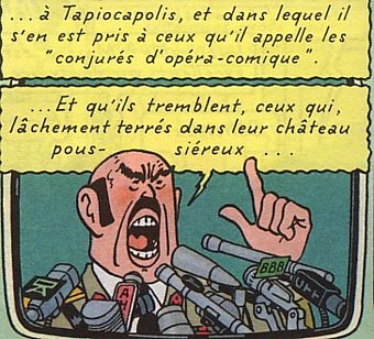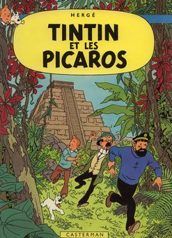 remarques: | première édition couleur 1976, C1, dos jaune avec titre, pages de garde, bleu clair aux portraits page de titre avec 24 traductions en langue étrangère 4ème plat avec couvertures des albums Tintin parus prépublication dans le journal Nouveau Tintin 1975/1976 l'action se passe au château de Moulinsart et au San Theodoros, la première planche sera modifiée par la suite (saison estivale alors que l'on est en février) >> p. 1 Tintin porte des pantalons longs et roule moto-bécane la Bianca Castafiore en tournée au San Theodoros où le général Tapioca détient maintenant le pouvoir grâce au régime Plekszy-Gladz contre le général Alcazar et ses picaros (guerilleros) qui ont pris le maquis soutenu par l'International Banana Company >> p. 2 Haddock ne supporte plus l'alcool dont le whisky Loch Lomond marque qui sera omni-présente dans cette aventure >> p. 3 les reproche de Séraphin Lampion à Haddock pour ne pas l'avoir soutenu lors de l'assurance des bijoux de la Castafiore n.b. Tintin et Haddock se vousoient alors que Haddock tutoie Lampion >> p. 4 Milou qui s'enivre à nouveau >> p. 5 l'interview de Paris-Flash suite à l'arrestation de la Castafiore et des deux Dupondt par Tapioca >> p. 7 de l'humour avec des gags déjà bien usés >> p. 8 la publicité télévisée pour le whisky Loch Lomond et Tapioca nomment Tintin et Haddock les conjurés d'opéra-comique >> p. 9 la dispute verbale entre Haddock et Tapioca qui invite Haddock à venir régler leurs différends au San Theodoros >> p. 10 pour une fois, c'est Tintin, pressentant un traquenard, qui ne veut pas partir avec Haddock, dispute entre Tintin et Haddock >> p. 11 le brave et fidèle Nestor qui écoute maintenant aux portes >> p. 12 arrivée à Tapiocapolis (anciennement Las Dopicos) avec la Santaero, Haddock et Tournesol sont accueillis par le colonel Alvarez, aide de camp de Tapioca, au San Theodoros, c'est la période de carnaval >> p. 13 Alvarez confond Tintin avec un joueur du groupe musical: les jolly old fellows (un groupe de jeunes musiciens) >> p. 15 connaissance avec Manolo, le garde-du-corps au faciès de brute, réapparition du colonel Spönz (affaire Tournesol) sous les traits du colonel Esponja qui est déçu de l'absence de Tintin >> p. 19 le gag de James Bond par Haddock, l'escorte du capitaine Haddock pour aller acheter du tabac! >> p. 20 arrivée impromptue et curieuse de Tintin et cette fois le trio est bel et bien piégé >> p. 23 réapparition de Pablo qui avertit Tintin d'un complot pour les éliminer >> p. 25 visite de la pyramide paztèque selon Pablo >> p. 26 la trahison de Pablo, Tintin et ses amis sont récupérés par les picaros d'Alcazar >> p. 28 Tintin déjoue le piège tendu par les tapioquistes >> p. 30 le parachutage d'alcool, dont le whisky Loch Lomond, pour neutraliser les picaros n.b. même les singes de la jungle sont devenus alcooliques >> p. 31 où l'on apprend le prénom d'Haddock: Archibald >> p. 33 dans le territoire des arumbayas avec leur chef Kaloma réapparition de Ridgewell, la nourriture exotique des arumbayas, >> p. 34 le whisky Loch Lomond qui fait partie de la culture locale chez les arumbayas >> p. 37 Haddock devient amnésique, les péripéties avec le caïman, l'anaconda et le gymnote = poisson électrique, Tintin prend bien soin des animaux (ce n'est plus le Congo) >> p. 39 Haddock retrouve la mémoire, arrivée au camp d'Alcazar = un camp d'ivrognes >> p. 41 apparition de Peggy, la colombe d'Alcazar (palomita mia) >> p. 42 l'invention de Tournesol: des comprimés contre les méfaits de l'alcool et discussions sur la pseudo-soeur de Tournesol >> p. 43 Tintin humaniste pour une révolution sans mort d'hommes >> p. 47 satire sur les médias, le procès télévisé, la justice de Tapioca Tournesol décoré par Alcazar de l'ordre de San Fernando >> p. 51 carnaval de Tapiocapolis, arrivée de Séraphin Lampion et sa clique belge des joyeux turlurons >> p. 54 carnaval durant lequel le général Alcazar va faire sa révolution n.b. sur les vignettes du cortège, on distingue Astérix, Zorro, des personnages de Tintin en Amérique, la tête de vache des sept boules, Groucho Marx, Mickey et plus loin Donald et Snoopy >> p. 56 le régime Tapioca renversé par le régime Alcazar sans violence >> p. 58 Tintin pardonne sa traîtrise à Pablo >> p. 59 course contre la montre pour délivrer les deux Dupondt prêts à être fusillés >> p. 61 libération aussi de la Castafiore qui fait sa loi dans la prison >> p. 62 retour à Moulinsart mais le régime Alcazar à Alcazaropolis n'apporte aucune amélioration au peuple de San Theodoros et dernier gag de Tournesol (avec la moutarde) >> un album peu convaincant, baisse de qualité (scénario, texte et graphisme), par rapport aux précédents albums, la ligne devient bien trop claire (Hergé probablement fatigué de dessiner les aventures de Tintin) planche redessinée au début d'album par rapport à la prépublication - révolution, intrigues, allusion aux Tupamaros, avec le thème de l'alcoolisme et des conditions sociales Tintin contre la peine de mort, message d'Hergé? une bonne intention toutefois: les comprimés permettant l'arrêt de l'alcoolisme - nouvelles apparitions: le général Tapioca en personne et Peggy, l'épouse d'Alvarez, genre mégère américanisée, réapparition de plusieurs personnages dont Ridgewell, l'explorateur de l'oreille cassée annexes - Ier et 4ème plat de l'album - quelques cases mémorables Information Tintin et les Picaros est le 23ème et pratiquement le dernier album de la série de bande dessinée sur les aventures de Tintin, paru en 1976 après avoir été pré-publié dans le Journal de Tintin en 1975/1976, cet album est le dernier qui ait été achevé par Hergé. la genèse de l’album remonte au début des années 1960, le contexte de Cuba inspire Hergé à l’origine, l’histoire se déroulait juste après les bijoux de la Castafiore dans les premiers synopsis, les Dupo