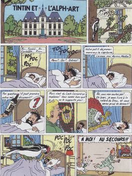 remarques: | album considéré comme pirate, rédigé par Yves Rodier, un amateur passionné des aventures de Tintin, album crée en hommage à Hergé album couleur, cartonné avec dos toilé, 62 pages avec 4 planches HT le scénario se base sur les esquisses qu'Hergé avaient débutées pour cette épisode, toutefois Rodier a imaginé lui-même la suite des aventures de Tintin à partir de la 42ème page, le dessin ayant été réalisé selon la méthode de travail d'Hergé préface de Rodier une aventure pas authentique mais qui se rapproche le plus du brouillon d'Hergé Bob de Moor aurait été plus à même d'illustrer ce récit, mais il n'y fut pas autorisé d'où la création de cet album pirate; le graphisme fait en amateur est toutefois réalisé selon la méthode Hergé avec une documentation soignée qui a nécessité 4 ans de travail - cet album est un hommage personnel à Hergé et l'auteur espère qu'il contentera nombre de tintinologues dont Benoit Peeters, Numa Sadoul, Philippe Goddin, Pierre Sterckx et Thierry Smolderen analyse dans cette aventure, Tintin et Hadock sont mêlés à un trafic de faux tableaux Haddock en profitera pour s'adonner à la culture des arts et Tintin sur les traces des faussaires, dont la rencontre avec Rastapopulos, son plus grand ennemi, n'échappera de peu à la mort qu'on lui prépare sous forme de noyade dans une masse de polyuréthane n.b. les polyuréthanes peuvent être fabriqués avec une grande variété de textures et de duretés en variant les monomères utilisés et en ajoutant d'autres substances, ils sont utilisés pour les colles, peintures, élastomères (caoutchoucs), mousses, fibres ainsi, ces plastiques aux vastes applications sont utilisés dans un grand nombre d'industries >> p. 6 le H pour Alph-Art comme Haddock >> p. 8 c'est ça une oeuvre d'art, ça ne sert à rien, c'est ça l'art dixit Haddock >> p. 15 Tintin roule vélomoteur et >> p. 20 Haddock roule Volkswagen >> p. 62 la statue d'Haddock comme épouvantail >> un album assez bien combiné mais un graphisme peu affiné et une qualité d'impression mal exécuté (ligne claire floue) et si le scénario se réfère à l'esquisse d'Hergé, il n'est pas d'une grande originalité et surtout les cases sont plus petites que dans les album Casterman, ce qui n'arrange pas la lisibilité, mais il faut se rendre compte que c'est de l'amateurisme et pas du grand Alph-Art, cela reste néanmoins une imitation de Tintin qui n'est pas à dédaigner, toutefois cela n'est peut'être pas vraiment rendre hommage à Hergé qui avait bougrement raison de ne pas avoir laissé son oeuvre continuer au gré de différents dessinateurs (le seul qui aurait pu l'effectuer aurait été Bob de Moor) à voir: le 4ème plat imaginé par le dessinateur Rodier >> à lire en comparant les esquisses d'Hergé dans l'album Casterman 1986 résumé et information sur l'ouvrage original >> voir l'album EO Casterman 1986 annexes - Ier plat et 4ème plat original de l'album - la première planche de l'album pirate |