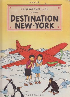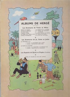 remarques: | 2ème édition couleur, la première étant B5 1951 titre de la série: le stratonef H22 page de garde aux damiers rouge et blanc avec la mention "ce livre appartient à" 4ème plat: au pays de l'or noir atterrissage forcé par manque de carburant sur une île de l'Océan? (inconnue mais de possession française), St-Pierre de Miquelon? Jo et Zette peuvent redécoller grâce à des fûts d'essence échoués sur la plage après une tempête nouveau départ mais dans une fausse direction: le pôle nord à nouveau atterrissage forçé sur la glace par manque de carburant, Jo et Zette seront recueillis par des esquimaux qui les conduiront chez un missionnaire français (en Arctique?), le père Francoeur anachronisme: >> p. 12 on parle déjà français avec l'esquimau >> p. 13 puis on parle du petit "nègre" esquimau le singe Jocko sera perdu sur un iceberg puis recueilli par un paquebot >> p. 20 les sosies de Jo et Zette (Clairette et ?) >> p. 21 le télégraphiste est surnommé le marconiste de péripétie en péripétie (nouveaux sabotages) le H22 s'envolera finalement vers New York avec de nouveau Jo et Zette aux commandes mais la facture pour les conversations téléphoniques sera probablement "salée" >> p. 4,5,16,17,21,22,12,25,26,28,31,38,40,42,43 la confession du pilote d'essai Werner et le pardon de Mme Legrand enfin, New York sera atteint dans les limites prescrites et malgré une dernière tentative desespérée des frères Stockrise, la clause du testament sera exécutée et les bons récompensés >> une aventure avec texte et graphisme assez intéressant mais le récit par rapport aux bandes publiées dans le journal Tintin a été passablement tronqué (surtout les péripéties du singe Jocko) |