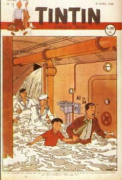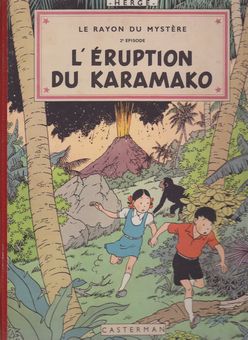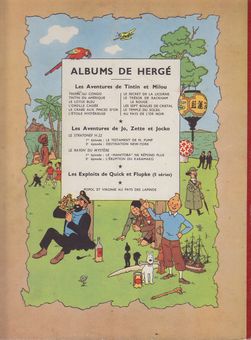 remarques: | 1ère édition couleur titre de la série: le rayon du mystère page de garde aux damiers rouge et blanc avec la mention "ce livre appartient à" 4ème plat: au pays de l'or noir repérés par les pirates, Jo et Zette doivent à nouveau se défendre avec courage; suite à l'éruption du Karamako, Zette se retrouve prisonnière des pirates, toutefois grâce une deuxième fois à l'intervention du rusé Jocko, Zette sera sauvée par l'aviation US tandis que Jo retombe sous l'emprise du savant fou qui veut transmettre l'âme de Jo à son robot >> p. 15 l'expérience manquée entre Jo et le robot de retour à New York, Zette est cette fois enlevée par des gangsters qui réclame une forte rançon mais c'est Jocko qui une nouvelle fois réussira à la délivrer >> p. 28 le singe Jocko qui parle pour la première fois (mais il pense plutôt qu'il ne parle) le père de Jo arrange un piège avec le paquebot "city of Los Angeles" pour s'introduire dans la cité sous-marine destruction de la cité, Legrand, Jo et les marins pris au piège dans la cité réussissent à y échapper in extremis en utilisant une coupole flottante >> p. 51 la fête à New York (une planche pleine page) >> p. 50 et même les singes sont de la fête >> des aventures toujours assez originales dans lesquelles Jocko joue un rôle de vedette, toujours un bon graphisme annexes - Ier et 4ème plat de l'album - une couverture du Journal Tintin - une couverture d'un album postiche |