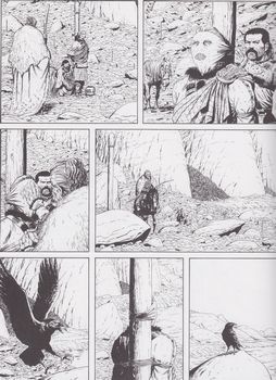 remarques: | un album des temps anciens inspiré quelque peu d'histoire biblique où un peuple de nomades est en migration, "Celui-là" est le fils du guerrier "une seule peau" et le petit-fils du shaman "la-voix-de-tous", le patriarche de la tribu "Celui-là" disparaîtra lors d'un éboulement qui détruit de nombreux nomades et la tribu se retrouve déstabilisée, mais "Celui-là" avait été reconnu comme le futur shaman et guide de son peuple >> un scenario d'Auclair pas toujours très auclair mais un superbe graphisme |
