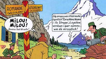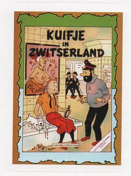 remarques: | une édition pirate publiée par Callico, mais probablement vers 1976 album pirate mythique avec une bande dessinée porno et macabre sur Tintin, un scénario vulgaire et peu recherché, mais pour l'épisode principal de Tintin en Suisse une bonne combination de différentes couleurs taminées dans le graphisme n.b. d'ailleurs Tintin n'est pas beaucoup en Suisse, il est au Congo et à Hong Kong (d'où les différentes couvertures des nombreuses versions existantes) c'est plutôt Haddock avec Tournesol qui se trouve en Suisse et qui par ses expériences fait réduire Haddock à la taille d'une souris; bien entendu la Castafiore est de la partie comme putain de luxe une introduction donne un avertissement sur Tintin: - il était toujours gentil - il ne buvait, ni ne fumait (ça ne se faisait pas) - il n'avait jamais oublié de se raser (mais avait-il de la barbe?) - il n'avait jamais d'argent - il n'avait jamais connu de femmes - il n'avait pas de papa, il n'avait pas de maman (ça on ne sait pas pourquoi) et dans ce récit Tintin a une allure tout à fait différente, il est humain, sa barbe pousse, il a une sexualité, on connait ses parents, il est alcoolique, drogué, etc le livre contient plusieurs épisodes (mais Tintin en Suisse en est le principal) dont: - les bijoux - c'est juste des dessins comme ça - - le mariage de Tintin - c'est aussi des dessins comme ça - - Tintin en Suisse - Tintin sifflera trois fois - - Tintin en Amérique - Botticelli - >> un album qui n'a aucun rapport avec le prix côté et la qualité littéraire, une pièce de collection information - cet album a été interdit en France et en Belgique - plusieurs éditions circulent dans plusieurs langues, la première édition est totalement blanche (1976 1500 exemplaires) - la qualité des dessins est plutôt médiocre (tout comme l'impression), mais les récits de Tintin en Suisse sont imprimés avec des encres de couleurs différentes (noir, gris, fluo, jaune, doré, bleu, etc) annexes - différentes illustrations et couvertures sur Tintin en Suisse |