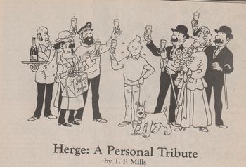 remarques: | article "Tintin discovers America" by T.F. Mills in Comics Journal no 86, November 1983 Tintin still relatively unknown in the States (1983) Tintin's first appearance in Britain was 1958 and was given an unexpected boost from the Times Literary supplement as well as 1960 by the announcement in the US Newsweek "here is a good comic" some passages taken from the article: - Tintin is readily recognized by the tuft of hair atop his round face and by the golf-knickers that he wore until recently - Tintin as an undeveloped figure among the others surrounding him - women are absent in Tintin's adventures (with the exception of the Castafiore) because when they are charming, they are not as loyal as Snowy) - Tintin has never directly killed anybody - curious appearance of Haddock in the land of black gold without being able to finish his explanations - Castafiore's emerald expressing perhaps Hergé's desire to retire, similarity of the Castafiore with Maria Callas - the château de Moulinsart becoming "Marlinspike hall" in the English edition n.b. in an allusion to the Haddock family's maritime history, the hall's English name refers to the marlinspike, a tool used in seamanship to slice ropes, in the American edition by Golden Press, the hall was named Hudson Manor as if to suggest it was one of the large estates along the Hudson River in New York State - the educational value of the Tintin books "Tintin, c'est moi" used to mention Hergé - the Hergé team is recognized as the leader of what is called the Brussels school of cartooning which is characterized by detailed yet clear artwork and high quality offset color printing that is rarely seen in American comics titles of books published with English traduction the blue lotus is in preparation and Tintin in Congo as well as Tintin in the land of the Soviets are not going to be published (1983): - Tintin in America - Cigars of the pharaoh - Tintin and the broken ear - the Black Island - King Ottokar's sceptre - the crab with the golden claws - the shooting star - the secret of the Unicorn - Red Rackham's treasure - the seven crystal balls - prisoners of the sun - land of the black gold - destination moon - explorers on the moon - the Calculus affair - the Red Sea sharks - Tintin in Tibet - the Castafiore's emerald - flight 714 - Tintin and the Picaros >> an excellent article about Hergé, Tintin, Snowy and the whole Tintin family |