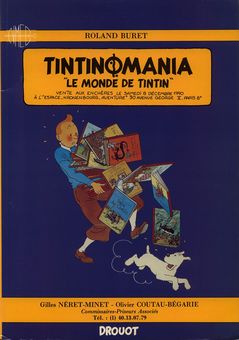 remarques: | - Tintomania I, le monde de Tintin, catalogue Drouot réalisé par l'expert Roland Buret, vente aux enchères Paris 1990 - ce catalogue est imprimé à 3500 exemplaires dont 500 exemplaires numérotés réservés à la librairie Buret - préfaces par Benoit Peeters, Stephane Steeman, président des Amis d'Hergé et Philippe Goddin secrétaire de la Fondation Hergé - Hergé aperçu biographique 1907-1983 - les ventes d'album Tintin (statistiques) - les collectionneurs de Tintin - 120 lots à vendre comprenant: albums Tintin, illustrations d'Hergé (cartes de voeux, publicité, cartes postales, affiches, jeux, etc), merchandising (figurines, jouets et autres objets), films et disques - premier catalogue de vente Drouot avec estimations encore en francs français, exemples de prix: - planches originales >> FF 300'000, - albums N&B >> 100'000 n.b. aux prix quand même moins élevés que la vente aux enchères d'Artcurial en 2012 annexes - album broché recto verso - page de garde de l'album - planches dessinées pour la réalisation d'une frise décorative (papier peint) représentant Tintin et ses compagnons (56 scènes), estimé FF 8000.- chaque - momie de l'inca rascar capac, sculpture en plâtre, corde et plumes, hauteur 24 cm, estimé FF 3000.- - buste de Hergé par Marie Dominique, hauteur 39 cm, plâtre cuivré estimé FF 4000.- n.b. estimation 1990 |