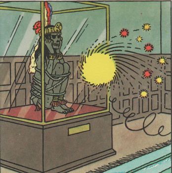 remarques: | un album qui reprend en partie l'article d'Hergé "comment naît une aventure de Tintin" dans cinquante ans de travaux fort gais préface de Michel Baudson à défaut d'être un héros archétypique, Tintin est un héros culturé et à plusieurs facettes, son musée imaginaire devenant le paradis de tous les amateurs d'objets chargés de sens A) comment naît une aventure de Tintin by Hergé 1/ d'abord le scénario, le fil conducteur, le plus simple possible (pas plus de 10 lignes) 2) puis c'est le découpage (le brouillon), un travail d'horlogerie pour chaque planche qui doit se terminer si possible en point d'orgue, soit par un gag soit par un suspense avec mise en page et narration - le texte a autant d'importance que le dessin car ils doivent se compléter - un album doit impérativement contenir 62 pages (du moins chez Casterman) >> p. 11 un exemple de découpage (une planche de Tintin chez les picaros qui sera supprimée par la suite) 3/ le crayonné = véritable travail de dessin 4/ le procédé par calque qui reprend les meilleurs traits du dessin puis on décalque les dessins choisis sur une planche propre 5/ les personnages sont en place, il faut maintenant y ajouter les décors et cela ne doit pas surcharger le dessin 6/ puis c'est la mise à l'encre (de préférence encre de Chine) entretemps, les textes/dialogues ont été vérifiés et écrits à la machine planche par planche, on ajoute alors aux dessins les emplacements des bulles ou ballons après avoir mesuré l'espace nécessaire pour les textes (les onomatopées seront ajoutés séparément) 7/ enfin c'est le coloriage effectué en aplats (= sans considération des ombres et des dégradés) par le studio sur conseil d'Hergé puis ce sera encore une superposition au trait noir >> p. 19 la planche est prête pour l'impression = planche 22bis non éditée dans l'album Tintin et les Picaros B) Tintin trait pour trait by Pierre Sterckx 50 ans de travaux fort gais - on pourra même dire qu'Hergé "gravait" sur sa planche pas d'ombres et pourtant des volumes pas de dégradés et pourtant des mouvements >> p. 21 la célèbre houppe de Tintin - et surtout le dessin d'Hergé manifeste l'expression des personnages >> p. 21 au début de Tintin, suite à son éducation chrétienne, Hergé pratique quelque peu la ségrégation sexuelle en faisant évoluer ses personnages dans un monde pratiquement masculin (exception la Castafiore) - les premières aventures de Tintin furent principalement des explorations, dès 1938 la période des îles - la philosophie de l'Orient avec le lotus bleu, le Tibet étant l'album préféré d'Hergé tout cela fut une comédie, la comédie à la ligne claire C/ le musée imaginaire de Tintin - les divers objets qui ont inspiré Hergé pour ses récits dont la hache de guerre, les objets africains (surtout dans l'oreille cassée) et bien sûr le fameux fétiche >> p. 19 temple du soleil, la collection africaine de l'explorateur - la momie Parakas pour Rascar Capac et les flûtes en os dans le temple du soleil - nombreux objets tibétains D) traduction d'écriture chinoise dans le lotus bleu >> p. 19, 54, 55 écriture chinoise du lotus bleu E) Tintin ou la collecte du monde by Henri Van Lier petite dissertation sur Tintin et ses albums >> p. 44 Hergé exagère sans doute quand il affirme qu'il fut un vrai forçat, avec boulet au pied et que Tintin le menait au fouet, mais il est vrai que les directives du prime adolescent furent draconiennes (couverture de 50 ans de travaux fort gais) >> un album avec quelques passages intéressants dont surtout celui d'Hergé pour la fabrication des planches de Tintin et illustrations inédites des objets dont Hergé s'est inspiré >> p. 45 l'exposition de la salle de la marine à Moulinsart annexes - couverture de l'album - la salle de la marine à Moulinsart - la page inédite de Tintin chez les picaros - momie de Rascar Capac et momie parakas - le salon de l'explorateur Chalet (7 boules) - le fétiche avec une oreille très légèrement cassée |