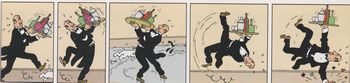 remarques: | Telerama hors série 2003, en collaboration avec Moulinsart, Tintin l'aventure continue A) Tintin dans Coeurs Vaillants (1929) à la demande de l'abbé Courtois qui dirigeait ce journal en France B) 22 auteurs commentent les 24 albums de Tintin 1/ le carré noir sur fond blanc dans p. 106 de Tintin chez les soviets, une ligne sombre qui n'est pas claire, Hergé ne voulait pas rééditer cette aventure, une erreur de jeunesse 2/ >> p. 12 la couverture de l'album 1931 Tintin au Congo avec la célèbre Ford T Sahara 3/ Tintin en Amérique p. 57 case 5 apparition involontaire de Rastapopoulos >> p. 14/15 biographie de Roberto Rastapopoulos (le méchant par excellence, avec bien sûr Mitsuhirato) 4/ Rastapopoulos débute officiellement dans les cigares du pharaon, première aventure exotique de Tintin 5/ une case qui vibre d'un sens profond et angoissant p. 30 3ème image de l'album lotus bleu 6/ la seule fois où l'on peut voir Tintin pris d'alcool (oreille cassée) " vive le général Alcazar et les pommes de terre frites" 7/ Tintin or not Tintin, on boit souvent beaucoup dans les aventures de Tintin et dans l'île noire, le whisky s'appelle encore Johnny Walker où Milou prend sa première cuite 8/ le vent de la grande aventure avec Tintin élevé chevalier de l'ordre du pélican d'or (sceptre d'Ottokar) le ZZRK = zyldav zentral revolutzionär komitzät 9/ Tintin est dans l'action pure (crabe aux pinces d'or) et découvre Haddock dans un premier rôle pitoyable, en rendant sa dignité au capitaine, Tintin devient en quelque sorte le père d'Haddock 10/ où l'on est heureux que la fin du monde n'est que simple tremblement de terre (étoile mystérieuse) 11+12/ le drame de la Licorne au XVIIème siècle, la tournée des îles, aventures sous-marine où le trésor de Rackham récupéré par Hadoque n'est pas où l'on pensait qu'il devait être 13/ premier album teinté d'onirisme et de fantastique (les sept boules de cristal) 14/ similitude avec la grande pyramide de Jacobs le masque inca implacable qui fixe Tintin >> p. 45 case 5 du temple du soleil 15/ l'or noir n'est pas seulement du pétrole mais aussi de l'encre (pour le trait noir) concernant Tintin (au pays de l'or noire) 16+17/ les astéroïdes = avortons d'une planète = cailloux de la grosseur d'une montagne = géocroiseurs de l'espace (objectif et on a marché sur la lune) 18/ où Hergé met en scène un cauchemar télévisé: la destruction d'une gigantesque cité d'outre-atlantique qu'il est inutile de nommer >> p. 51 de l'affaire Tournesol 19/ où les modifications apportées ne jouent pas toujours en faveur de la réédition (coke en stock et l'île noire) 20/ quand lama (le moine pas l'animal) content (ou concentré), il lévite (Tintin au Tibet), grand bazar et compagnie, le merveilleux et la pureté chez Tintin et pas de méchants dans cette aventure 21/ une histoire d'oiseaux voleurs et de bijoux (Castafiore) qui volent et s'envolent 22/ dernier vol pour Tintin, la saga touche à son terme 23/ Tapiocapolis contre Alcazarpolis, un cauchemar 24/ la frustration d'une fin escamotée C) l'oeuvre au clair 1/ le drame de Shanghai (1932), découverte d'une civilisation par Hergé 2/ décibels en ce miroir, la profession de foi d'Hergé, contre l'opéra, mais pour la musique, la Castafiore une venus ex machina qui réapparait dans les sept boules de cristal, peut'être grâce à Jacobs 3/ ce plat décor qui est le sien car en matière de décor, Hergé est des plus parcimonieux 4/ quand la casse fait écran, Tintin au cinéma 5/ ligne de vie, petite biographie d'Hergé 1907-1983 avec p. 64 à 68 plusieurs photos inédites d'Hergé 6/ l'ami Jacques, biographie de Jacques van Melkebeke - né en 1904, mort en juin 1983, 3 mois après Hergé, ce fut le scénariste fantôme qui travailla au quotidien Le Soir, journal qui reparait durant l'occupation sous sequestre allemand et sans l'accord de ses propriétaires, raisons pour lesquelles les bruxellois le surnommait "Le Soir volé" - dans ces pages fortement engagées dans la propagande collaborationniste, l'ami Melk illustre, non sans talent, la page jeunesse d'où ses ennuis lors de la libération D) Georges Rémi, homme d'intérieur Hergé raconté par Fanny, description d'Hergé qui entre autre aimait les chats et avait une passion pour son chat siamois E) p. 78/79 les deux planches supprimées de "on a marché sur la lune" = les cases 4 à 17 publiées dans le journal Tintin en février 1953 qui sont manquantes dans l'album F) une famille ad hoc - Tintin, selon Michel Serres un rond dans l'eau c'est un visage quelque peu inexpressif, à l'inverse des autres personnages - Milou, un fox terrier blanc pourvu d'émotions humaines, qui commente l'action et les attitudes de Tintin tout en cherchant à le protéger - Haddock, un homme de la mer qui montre une loyauté, un courage et un sens de l'honneur énormes tout en étant d'une certaine grossièreté et d'une grande irascibilité - les Dupond(t), on ne connait pas leurs prénoms, ni frère, ni jumeaux, ce sont des personnages drôles et ambigus - Tournesol, il est devenu un mythe, mais il n'est pourtant pas la copie carbone de son modèle Piccard - Nestor, c'est l'ange gardien de Moulinsart où il est un facteur d'équilibre - la Castafiore, une diva vaniteuse qui n'a peur que de ne pas être à la hauteur, avec une cervelle d'oiseau mais qui n'a pas son pareil pour remettre les choses en ordre - Alcazar, général d'opérette, il est le seul personnage qui évolue physiquement et humainement au fil des albums - Lampion, quintessence de fâcheux belge, un belgicain = le belge dans tous ses excès - Tchang, dans l'esprit d'Hergé, un deuxième Tintin - Rastapopoulos, l'infâme Roberto, caricature du méchant de service G) bibliographie (bien complète en 2003) à noter: >> p. 20 une bonne description des aventures de Tintin: complexes et bien construites, le fil narratif (du moins dès le lotus bleu) est toujours solide avec