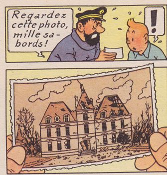 remarques: | mais que se passe-t-il donc à Moulinsart? qui sont ces mystérieux "colloqueurs" et de quoi parlent-ils? de psychologie?, d'oreilles cassées?, de lotus rouges et de crabes aux pinces bleues? mais alors où sont passés Tintin et Haddock? pourquoi Tournesol est-il sourd? qu'y a-t-il entre Nestor et Irma? qui organise ces visites guidées du château? d'où vient l'argent d'Haddock? Tintin serait-il un voleur? et le whisky? est-il vraiment devenu imbuvable? vous le saurez en lisant ce livre colloque = entretien entre 2 ou plusieurs personnes 1/ bienvenue à Moulinsart - visite d'un groupe de tintinomanes à Moulinsart 2/ los amigos de nuestros amigos - comparaison entre les récits "chez les soviets" et "chez les picaros" l'évolution du texte et celle des personnages, le graphisme depuis la réédition des albums couleur n'ayant pas trop changé (n.b. sauf peut'être pour le dernier album des picaros dont le graphisme est moins soigné) - article séparé: Hergé au XXème siècle >> p. 28 le dossier Georges Remi - lancement le 1.11.1928 du Petit XXème et 10.1.1929 naissance de Tintin et Milou qui s'embarquent pour la Russie soviétique >> p. 31 extraits de presse de l'époque 1929-1936 3/ et nous pompons toujours >> p. 40 description des Dupond(t) avec panorama complet de leur activité, leur seule coquetterie, c'est leur moustache! >> p. 42 travailleurs arc-boutés sur les pompes à air du scaphandrier (Rackham le Rouge) >> p. 44 enquête sur le N14 et les voitures qui font boum ce qui leur causera une maladie capillaire >> p. 52 les métamorphoses des personnages d'Hergé, seuls les Dupond(t) ne changent pas >> p. 57 chapitre séparé: les albums Tintin en 200 lignes 23 albums jusqu'à Tintin et les Picaros où Tintin est à nouveau mentionné dans le titre, dès les cigares du pharaon, il n'y aura que deux albums à mentionner Tintin: Tintin au tibet et Tintin et les Picaros 4) ce château n'est plus à vendre >> p. 66 quelques manifestations exotiques mises à part, la religion est le grand refoulé de l'oeuvre d'Hergé (n.b. sauf peut'être pour Tintin au Congo) - dissertation sur la dernière page de l'or noir qui montre le château de Moulinsart en ruines suite aux expériences du prof. Tournesol; après quelque surprise, Haddock, en dégustant un bon cigare, n'en semble pas trop affecté et au début du prochain album "objectif lune", le château a déjà été reconstruit - à noter: le récit de l'or noir avait commencé avant l'arrivée d'Haddock et de Tournesol et la destruction du château mentionnée peut'être pour rappeler l'existence d'Haddock et de Tournesol - à noter aussi que, question actualité, l'or noir allait même plus loin que le lotus bleu et l'oreille cassée en prévoyant une crise du pétrole avec le risque d'une guerre mondiale et dès son commencement (éposode interrompu en mai 1940), - jusqu'alors socio-politique, Hergé s'est tourné vers d'autres sujets, des sphères inexplorées de pure fiction >> p. 73 avec l'or noir, Hergé rompt avec la discontinuité imposée par les évènements à l'achèvement de son album, en faisant comme si cette interruption n'avait jamais eu lieu - et au début des 7 boules de cristal, on remarque un Haddock à Moulinsart qui se plait en un véritable châtelain avec garde-robe, cravatte, monocle, paddock et domestique et puis il oubliera pour un temps qu'il est capitaine de haute mer, depuis Rackham le Rouge, Haddock passe de la mer à la terre >> p. 80 les exploits nautiques dans le dernier rendez-vous avec l'aventure maritime (secret de la licorne et Rackham le Rouge) n.b. sauf peut'être encore un peu dans coke en stock - et le chevalier François de Hadoque deviendra pour Hergé un lourd héritage (trésor volé et détenteur du secret, aussi pour Moulinsart) - dissertation sur l'enquête menée par Tintin dans le secret de la licorne et dans la recherche du trésor de Rackham le Rouge - Hergé a ici modifié le comportement habituel de son héros qui ne poursuit plus une bonne cause ou un objet désintéressé, Tournesol avec sa générosité compensera ce déséquilibre >> p. 93 chapitre séparé: une visite guidée au château de Moulinsart - un des joyaux les plus étonnants de la province brabançonne (n.b. copié sur le château de Cheverny, Moulinsart dans l'album est bien sûr en Belgique) - construit au 17ème siècle par Louis XIV dans la forêt de Soignes, le château est légué par Louis XIV au chevalier Hadoque pour ses loyaux services n.b. le château devrait donc être en France (note du lecteur) >> p. 94 description de la salle de marine avec la statue en bois des îles du chevalier Hadoque - la biliothèque avec une collection de 23 albums illustrés, un chef-d'oeuvre du genre, chacun contenant en moyenne 806 dessins sur 62 pages, qui valent aujourd'hui une petite fortune - l'escalier d'honneur de 15 marches en marbre dont la 14ème est cassée - les chambres style Louis XIII avec un portrait de Chichelieu et de Georges Remi 5/ votre appareil ne nous intéresse pas - dans l'affaire Tournesol, celui-ci n'est plus un savant distrait, il n'est plus le même (tout comme dans l'aventure lunaire) et il agit maintenant de façon autonome >> p. 106 l'interprétation de la surdité de Tournesol - les 7 boules de cristal et l'affaire font mention tous deux d'un enlèvement de Tournesol et dans le temple du soleil lors de l'éclipse, Tournesol aurait eu l'idée d'aller sur la lune (n.b. cette affirmation n'engage que l'auteur de ce livre) à noter que ce chapitre n'est pas des plus intéressant >> chapitre séparé: album de famille = les personnages du monde d'Hergé par ordre alphabétique de Abdallah, le petit oiseau en sucre au gentil, dévoué et courageux Zorrino dont les principaux: Bianca Castafiore, les frères-jumeaux Halambique, Séraphin Lampion, Müller alias Smith alias Mull Pacha, >> p. 131/132 description de la famille Legrand (Jo et Zette) Nestor (au sens propre et figuré tel