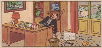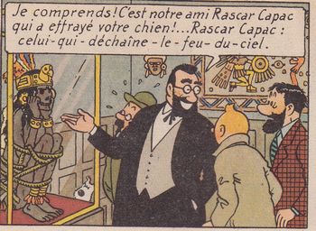 remarques: | première publication de la bio-bibliographie officielle des sept membres de la célèbre expédition Sanders-Hardmuth partie au Pérou de 1946 à 1948, à la recherche du fameux trésor de Rascar-Capac "celui-qui-déchaîne-le-feu-du-ciel" 1/ Anton Sanders 1908-1961 - né à Berne, directeur d'une entreprise pharmaceutique à Bâle, il commence à collectionner l'art tolmèque et organise une expédition ethnographique, d'abord au Chili puis en Argentine - avec la collaboration de Gertrud Hardmuth, une tétraplégique, propriétaire et rédactrice en chef du quotidien Neue Oesterreichische Zeitung, avec laquelle Sanders entretient une relation personnelle - non-marié, Sanders accolera à son patronyme celui de sa compagne qui financera la célèbre expédition au Pérou - c'est le cinéaste français Clairmont qui persuada Sanders-Hardmuth d'organiser une expédition - qui défraya la chronique en violant des sépultures incas dont celle de Rascar Capac, celui-qui-déchaîne-le-feu-du-ciel - en compagnie de sommités scientifiques tel l'américaniste Bergamotte - Sanders n'a édité que deux ouvrages: - Stoecker, l'exemple de la rigueur et - psycho-géographie du médicament, le cas Suisse - par contre, il a été écrit plusieurs monographies sur Sanders dont: - rêver assis, journal d'un bonheur immobile par Gertrud Hardmuth et mon père, cette ordure par son fils Ernesto Di Campo/Sanders, fils non reconnu par Sanders 2/ Hippolyte Bergamotte 1893-1955 - né à Nancy, d'origine polonaise sous le nom d'Hippolyte Streszincski, il montre très tôt des dons exceptionnels pour les langues - étudie à l'université de Louvain, puis en France, doté d'une force étonnante (champion de France au lancement de poids), - rentré en Belgique, il obtient la nationalité belge, prend le pseudonyme de Bergamotte et rencontre le jeune et fringant Tryphon Tournesol, démobilisé après que l'explosion d'une grenade lui ait sérieusement endommagé l'appareil auditif et qui entamait de remarquables recherches en physique fondamentale (n.b. seule explication à ce jour sur la surdité de Tournesol) - Bergamotte devient professeur à l'université de Bruxelles, section ethnographique, pour les langues tolto-maltèques - membre de l'expédition Sanders-Hardmuth, sa célébrité s'accroit au retour de l'expédition - par la suite, il travaille à l'ambassade de Belgique à Lima où il trouve la mort en 1955 lors du terrible accident de chemin de fer d'Ayacucho (n.b. il n'eut pas la chance de Tintin et Haddock lors du sabotage de leur trains dans le temple du soleil) il est l'auteur de nombreux ouvrages tel: - la simplicité du système vocalique Quecha ainsi que de curieuses études dont parmi d'autres - je hais les moustiques et la crêpe au maïs - les femmes Quechua et la contraception par les herbes 3/ Jacques Clairmont 1905-1968 - sujet français, passionné de photographie, il travaille d'abord dans la presse, puis devient l'assistant d'un cinéaste et enfin devient lui-même cinéaste, il tourne plusieurs films dont entre autres: - le perroquet vert à deux crêtes et touffes rouges sous les ailes >> ce film fera sa notoriété et lui assure le succès - il se lie d'amitié avec Bruce Hornet qui le fait engager dans l'expédition Sanders-Hardmuth auteur de nombreux ouvrages dont: - la tarte au riz, un drame de notre temps 4/ Félix Cantonneau 1898-1949 - sujet belge, pratique la méditation et collabore avec le maître magicien et philosophe Ouspensky qui le recommande à son confrère Laubépin qui à son tour le présente à Gertrud Hardmuth qui le fait engager dans l'expédition Sanders-Hardmuth en tant que fin connaisseur des mystères encore non résolus de la cosmogonie précolombienne auteur de plusieurs ouvrages de culture précolombienne tel que: - j'ai vu des patates célestes - le mystère inca, la roue carrée? n.b. aucune parenté avec Paul Cantonneau de l'expédition Calys mais le prénom de Félix n'est pas mentionné dans l'album les sept boules de cristal 5/ Marc Charlet 1900-1999 - sujet français, fait des études de lettres et d'humanité, homme de robuste constitution - de par son intérêt à l'ethnologie, il devient exploralteur et organise des expéditions dans les îles Salomon et en Afrique où il peaufine son personnage d'aventurier indestructible avec en 1934 la malheureuse traversée du territoire Mau-Mau dont il sera le seul survivant - connu pour ses talents d'organisateur, il est engagé dans l'expédition Sanders-Hardmuth - à partir de 1985, bloqué par l'arthrite, il se consacre à l'écriture dont plusieurs ouvrages ethnographiques et romans d'aventure tel que: - la bastonnade et la roucoulade chez les indiens Possuertas - le genou qui tue - voyou le jour, voyelle la nuit 6/ Armand Laubépin 1898-1953 - sujet luxembourgeois, linguistique diplômé, il parle plusieurs langues, il enseigne au lycée St-Willibord d'Echternacht, il est très aimé de ses élèves dont les témoignages le dépeignent comme un grand pédagogue humaniste - devenu traducteur de textes précolombiens, il est remarqué par Bergamotte qui l'engage dans l'expédition Sanders-Hardmuth - il meurt le même jour que Bergamotte: un 25 juin, mais deux ans plus tôt, il fut l'auteur de plusieurs livres plutôt historiques tel que: - le soulèvement des Yanaconas, toute honte bue et une monographie: - Armand Laubépin, dit "maman", notre professeur d'espagnol (témoignages recueillis) 7/ Bruce Hornet 1893-1983 - sujet belge, après des études brillantes, il se consacre à l'étude des papillons et après avoir été un militant révolutionnaire, il devient un des spécialistes mondiaux des lépidoptères - il est nommé en 1961 directeur du musée des sciences naturelles de Bruxelles - en 1946, quand Sanders préparait son équipe pour partir au Pérou, celui-ci permit à Hornet d'y participer pour détailler et décrire les curieux papillons figurant sur des poteries précolombiennes
