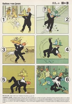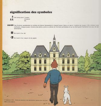 remarques: | tome 1 jouons avec Tintin à Moulinsart, couleur ocre, 4ème plat vol 714 pour Sydney les jeux Tintin: - replacer les images d'un album dans le bon ordre, - noter les erreurs dans un dessin, - jeux à dés et à jetons, - jeux de mots commençant par une lettre de l'alphabète, - mémoriser des objets, etc >> des jeux pas toujours intéressants, jeux de société, mais assez originaux, l'album-jeu en Syldavie étant peut'être le plus attrayant annexes - couvertures Ier et 4ème plat - page de garde - 1 planche avec le jeu de Nestor |