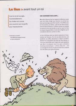 remarques: | page de garde: les animaux de Benjamin Rabier qui poursuivent Milou Hergé s'est abondamment documenté sur les animaux qu'il dessinait, il les a mis en scène dans leur milieu en tenant compte du comportement de chaque espèce parmi les animaux qui ne peuvent se permettre la moindre hésitation dans leurs déplacements aériens, terrestres ou aquatiques figurent avant tout le pigeon, le cheval et le dauphin Hergé a toujours bien considéré les animaux, sauf peut'être dans Tintin au Congo dans lequel Tintin se livre à de véritables carnages et à des procédés douteux (avec le rhinocéros), mais on peut quelque peu pardonner à Hergé cette erreur de jeunesse dans une époque où la chasse en Afrique était considéré comme un sport non encore limité ni de mauvaise réputation A) les animaux de terre le cheval - au service de l'homme comme moyen de transport, mais aussi comme compagnon - le cheval au galop: un seul pied supporte le poids des corps et donne l'impulsion nécessaire à la course la vache - l'animal le plus présent, en Amérique la vache devient matière et aux Indes, elle est sacrée - le buffle ne sera présent que dans Tintin au Congo et le yack est une curiosité toute bovine (Tintin au Tibet) l'éléphant - sagesse et force tranquille, mais ses colères subites sont légendaires - ces pachydermes sont des animaux sociaux, ils vivent en troupeaux très unis dirigés par une femelle, les mâles quittant le groupe à leur maturité, ne revenant que pour la reproduction le rhinocéros - un ruminant qui se distingue par un nombre variable de cornes sur le museau - c'est l'animal le plus maltraité par Tintin au Congo le lion - roi des animaux mais dompté par Milou et la rencontre entre Tintin et le lion au sommet d'une butte est devenue célèbre, reprise par la publicité (notamment par Perrier) les singes - sapajou, chimpanzé, nasique, gorille - de nombreux singes interviennent dans les aventures de Tintin peut'être même est-ce l'animal le plus utilisé par Hergé, Milou et le chat siamois de Moulinsart exceptés - à noter: le gorille de l'île noire la girafe - une demoiselle au collet monté, l'animal le plus haut du monde - présent uniquement dans Tintin au Congo le lama - est un camélidé (famille des chameaux) - Haddock fera leur connaissance dans de fâcheuses circonstances alors que Tintin et Haddock utilisent des dromadaires (vaisseaux du désert) pour se déplacer dans le pays de la soif - l'allure du dromadaire est particulière, il va l'amble c'est à dire qu'il avance en même temps les jambes du même côté, il en résulte un déplacement du centre de gravité à chaque mouvement, ce qui ne va pas sans inconfort pour celui qui le monte l'ours - un plantigrade qui tient à sa peau - Tintin fera leur connaissance dans objectif lune le tigre - du Bengale aux rayures royales - erreur d'Hergé qui fait sauter un tigre d'un arbre (cigares du pharaon) le chat - s'il y a bien un mot qui définit le chat, c'est le mot mystère - Hergé aimait les chats, il avait surtout une passion pour son chat siamois, il l'a d'ailleurs souvent dessiné dans le château de Moulinsart - les anciens égyptiens vénéraient le chat, mais au Moyen-Age, on le considérait comme auxilière des sorcières le chien - une fidélité sans failles - Milou en est le représentant typique pour Tintin - le chien possède une certaine intelligence et souvent le chien est à l'image de son maître - les interventions de Milou sont le plus souvent efficaces et salvatrices - chez les anciens égyptiens, le chien, représenté par Anubis, était associé à la mort, il guidait l'homme dans la nuit de la mort B) les animaux de l'eau le crocodile - le dernier lien direct avec les dinosaures - le crocodile n'a pas de langue et le plus redoutable est le crocodile marin qui peut dépasser les 7 mètres - dans les aventures de Tintin, le crocodile est souvent présent, Haddock le prendra même pour un tronc d'arbre l'hippopotame - en grec = le cheval de fleuve quoiqu'il descend plutôt du cochon - c'est un ruminant aquatique - apparait dans Tintin au Congo l'anaconda - cousin du python, il est la version géante du boa - il peut jeûner plusieurs mois, mais quand il a faim, il peut engloutir cerfs et caïmans - les incas le vénéraient comme serpent-dragon, initiateur de vie (temple du soleil) le crabe - un désarmant crustacé, - c'est le seul animal qui figure dans le titre d'une aventure de Tintin - et les Dupond(t) en subiront ses douloureuses morsures le requin - sa mauvaise réputation n'est ni méritée ni justifiée - toutefois dans les aventures de Tintin, il est considéré comme un tueur - sa denture constitue une véritable machine à tuer, ses dent triangulaires mesurent jusqu'à 7 cm et les dents perdues ou cassée sont automatiquement remplacées - Tounesol inventera le sous-marin requin C) les animaux de l'air le moineau - un merveilleux oiseau qui était l'un des oiseaux les plus abondants au monde, mais il est menacé par le nombre accrue de chats domestiques, par l'urbanisation et par la pollution la pie - une ravissante voleuse (gazza ladra) dite aussi "pie bavarde" - apparait dans l'île noire et les bijoux de la Castafiore le perroquet - un beau parleur impétueux - la psittacose (mentionnée dans Tintin au Congo) est une maladie contagieuse transmise par les perroquets - Coco, le perroquet (papagelli) préféré de la Castafiore et le perroquet témoin du meurtre de Balthazar (oreille cassée) - mais il n'est pas l'ami d'Haddock le cygne - un prince farouche représenté par Hergé dans l'affaire Tournesol - lui, n'est pas l'ami de Milou le condor - un vautour distingué qui peut vivre jusqu'à 50 ans - pour les incas, c'était une représentation du soleil - le condor dispose de deux atouts: une fantastique voilure terminée par de longues plumes et une vue aussi perçante que ses serres sont acérées, Tintin en fera l'expérience D) des animaux qui res