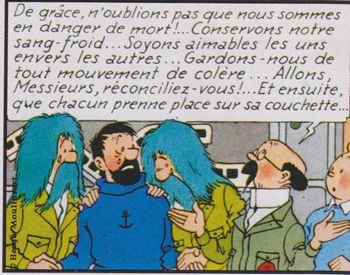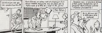 remarques: | article sur Haddock et la marine, Hergé remonte sur Seine, le musée de la marine, fêlé d'Haddock, Moulinsart titre complet du périodique: Haddock pavoise à Paris prologue by Jean-Marc Vidal - Tintin flingueur et Haddock pavoise à Paris - les difficultées pour travailler avec Nick Rodwell, de dures critiques envers Rodwell 1) l'article Hergé remonte sur Seine a) l'exposition de St-Nazaire 1992-1999 by J.-M. Vidal - inspirée de l'album des 7 boules de cristal, centré sur Haddock et la marine - entretien avec Jean-Claude Chemin, organisateur de l'exposition et fondateur de l'association des 7 soleils (7 boules de cristal et temple du soleil) n.b. jusqu'en 1950, St-Nazaire était la tête de ligne transatlantique pour tous les navires vers l'Amérique du Sud, les chantiers de St-Nazaire ont entre autre construit le paquebot Normandie en 1935 >> p. 45 la construction du sous-marin de Tournesol l'exposition continue au musée de la marine "Mille sabords" à Paris b) fêlé d'Haddock by Pierre-Yves Bourdil - un personnage de substitution pour sortir Hergé de sa religion qui ne lui apportait plus rien, la naissance d'Haddock marque celle de la BD psychologique - l'alcool qui est un lien entre Tintin et Haddock, Tintin ne boit pas mais il a toujours sur lui un petit flacon en réserve pour faire changer d'avis Haddock - Haddock est un laïc, un sensible, contrairement à Tintin qui est un mystique, voir un peu orgueilleux - les jurons chez Haddock pour compenser la contrariété >> p. 47 la famille Tintin c) je chante donc je suis by Numa Sadoul et Manuelle Calmat - en l'an 2000, la Castafiore chante au Grand Théâtre de Bordeaux et Alain Juppé est décoré de l'ordre du pélican noir - c'est une association qui ne peut compter plus de 24 membres (se référant aux 24 albums de Tintin) et et il faut montrer patte blanche en subissant un examen tintinesque pour y être admis d) profession: chasseur de pirates - interview du cabinet Berenboom engagé par Moulinsart S.A. pour chasser les éditions pirate mais l'essentiel de la piraterie concerne les objets - on ne poursuit pas les parodies, mais les faux Tintin dans un but mercantile - de toute façon, Tintin tombera dans le domaine public en 2053 - façit: Berenboon est plus nuancé que Nick Rodwell! e) les critiques des tintinophiles à Nick Rodwell 1) par Benoit Peeters, qui est considéré comme un traître par les éditions Moulinsart mais qui trouve nauséabond le livre "le mythe Hergé" par Maxime Benoit-Jeannin qui traite Hergé de nazi 2) par Numa Sadoul, pour lui, c'est la stratégie Rodwell avec le souci de préserver (un respect intense?) l'oeuvre d'Hergé pour endiguer la banalisation de l'oeuvre, Sadoul apparait donc ici plutôt comme défenseur de Nick Rodwell, malgré qu'il le traite d'emmerdeur en page 54 3) par Pierre Sterckx, qui comprend quelque peu les bonnes intentions de Nick Rodwell mais qui lui reproche ses maladresses et abus de pouvoir à noter que Sterckx a été exclu de l'entourage de Moulinsart pour sept ans 4) par Albert Algoud qui a eu maille à partir avec Moulinsart et qui a édité ses livres sans leur accord "Haddock illustré" (1991) et "Dupondt sans peine" (1997) 5) par Hugues Dayez (l'auteur de Hergé et les héritiers) qui mentionne que - depuis leur chalet suisse - Fanny et Nick Rodwell ont lancé une opération médiatique en collaborant avec le magazine Geo pour le fascicule "Tintin, voyageur du siècle" afin de rehausser leur blason - depuis lors, Moulinsart sortira plusieurs albums basés sur Tintin et Haddock avec les bateaux, les autos, les animaux, les savants, etc - Dayez qualifie Nick Rodwell d'ayatollah de merchandising 2) les sites internet sur Tintin - dont les sites officiels tintin.com et boutique.tintin.com - un bon site: forum-tintinophile.com qui remplace quelque peu l'excellent premier site tintin.qc.ca qui a dû fermer sur injonction de Moulinsart mais aussi 1000-sabords.fr (librairie La Rochelle), museeherge.com (musée de Moulinsart à Louvain-la-Neuve), naufrageur.com (Tintin est vivant), tintinmilou.free.fr (l'univers de Tintin), tintinologist.org (un site anglais), gorianet.it/tintin (un site italien qui remplace le site tintin.qc.ca, taper à la découverte de Tintin) ainsi que lesamisdeherge.be n.b. pour certains sites, il faut passer par google information Tintin.qc.ca basé au Canada et créé par Nicolas Sabourin était depuis 1995 le tout premier site web en français consacré à Tintin qui a dû fermer pour ne pas observer la charte de la fondation Hergé qui l'obligeait à demander une foultitude d'autorisations écrites et à retirer de son site nombre d'images 3/ autres articles de Bo Doï no 40 a) interview et description de Franz (Franz Drappier) et sur ses ouvrages dont deux albums sur la flibuste b) >> p. 112 les pinailleries sur Tintin >>> un fascicule surtout intéressant de par les critiques adressées à Nick Rodwell annexes - couverture du magazine - deux illustrations sur les aventures de Tintin (l'étoile mystérieuse et on a marché sur la lune) - un strip pirate avec la Castafiore - 4ème plat du magazine avec pub pour Colt Walker |
