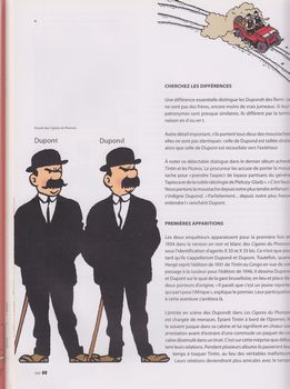 remarques: | le monde d'Hergé, semblable quelque peu à la comédie humaine de Balzac, mais ce sont surtout les personnages autour de Tintin qui retiennent l'attention et la sympathie des lecteurs (12 personnages: Tintin, Milou, Haddock, Tournesol, les Dupond(t), la Castafiore, Tchang, Séraphin Lampion, Alcazar, Müller et Rastapopoulos n.b. le travail d'Hergé avec le souci de la qualité et de la précision, Tintin au pays des soviets étant un péché de jeunesse 1/ - Tintin - contrairement à Haddock, Tintin n'a ni parents ni ancêtres, il est sans famille, sans attache et sans âge mais internationalement connu, Totor fut le précurseur de Tintin qui apparait le 10.1.1929 et dans ses aventures, Hergé reste très attentif à l'actualité de l'époque - inspiré peut'être aussi du reporter-aventurier Albert Londres (information détaillée sur Londres >> voir Tintin, reporter du siècle) - journaliste (mais Tintin prend peu de notes à l'exception de chez les soviets), il se transforme vite en enquêteur et détective - Tintin n'évolue guère avec ses fameuses culottes de golf, seule concession d'Hergé, des jeans dans Tintin chez les picaros, ce qui fut d'ailleurs une erreur en convient Hergé - Tintin est un personnage cumulant toutes les qualités et les vertus humaines - Paul, frère d'Hergé, fut peut'être le modèle pour Tintin, toutefois aucune mention sur l'origine du nom de Tintin (peut'être inspiré de Tintin-lutin par Benjamin Rabier en 1898, voir aussi Tintin et moi) - un autre concurrent de Tintin dans les aventuriers du ciel de Nizerolles = Tintin, le petit parisien en 1935 - en tout cas, Tintin c'est moi, disait Hergé en 1973 2/ Milou - l'ami fidèle de Tintin, il est à ses côtés dès le début, >> p. 24 l'origine du nom: un ancien amour d'Hergé, - selon Farr, Milou serait un mâle, c'est un fox-terrier, mais ceux-ci de couleur blanche sont plutôt rares, il prendra sa première cuite au pays des soviets, il est le véritable héros dans le sceptre d'Ottokar en récupérant le sceptre au lieu d'un os, il est surdoué et c'est probablement le seul chien-aventurier qui pense; toutefois il a peur des araignées et deviendra par la suite le rival d'Haddock 3/ Haddock - le personnage le plus populaire des aventures de Tintin et malgré son penchant pour l'alcool, il deviendra l'ami le plus proche de Tintin - le succès d'Haddock est dû à sa personnalité humaine et sa faillibilité; au contraire de Tintin, il a des ancêtres et on connait son prénom: Archibald n.b. un certain Richard Haddock (1629-1715) aurait été amiral dans la Royal Navy à noter: le film "capitaine Craddock" (1933) similitude avec Hergé mais en tout cas l'inverse de Tintin - c'est un irrégulier du langage, célèbre pour ses bordées de jurons dont les classiques "mille sabords" et "tonnerre de Brest" ainsi que le "fameux pacte à quatre", Hergé privilégiant les termes maritimes et scientifiques - Haddock déteste l'eau (il aura même un malaise en buvant de l'eau dans le crabe aux pinces d'or), le whisky single malt Loch Lomond étant son whisky préféré (mais Johnny Walker dans l'île noire sans la participation d'Haddock et Haig dans coke en stock) - il est le personnage préféré dans les sondages avec 37% (Tintin 34% et Milou 13%) 4/ Tournesol savant farfelu, visionnaire, romantique (avec la Castafiore), mais c'est surtout sa surdité qui sera une source inépuisable de quiproquos (n.b. il n'y a que le mot "zouave" qu'il entend parfaitement) - ce n'est que 15 ans après Tintin (en 1944) que Tournesol fait son apparition et on lui doit le château de Moulinsart - c'est aussi un sportif qui pratique nombre de disciplines dont la lutte à la savate! ainsi qu'un grand inventeur tel que le sous-marin requin, l'appareil à ultra-son, la pilule anti-alcoolisme (peut'être sa meilleure invention) et la télévision couleur - il s'adonne aussi à la radiesthésie "encore plus à l'ouest" - les confrères de Tryphon Tournesol: Philémon Siclone, Nestor Halambique, Hippolyte Calys, le prof. Bergamotte 5/ Dupond et Dupont - record de participation, les Dupond(t) sont présents dans 20 des 24 albums de Tintin - ils apportent aux récits une dose de burlesque - Hergé aurait été inspiré des Dupond(t) par son père Alexis et son oncle Léon qui étaient de vrais jumeaux, ils portaient la moustache avec l'expression "je dirais même plus", ils étaient aussi munis soit d'une canne soit d'un parapluie - 2 autres héros de cinéma portaient également des chapeaux melon: Laurel et Hardy qui avaient une attitude quelque peu semblable aux Dupond(t) >> p. 60 la différence est dans les moustaches - souvent chargés d'arrêter Tintin, leur relation avec lui deviendra plus amicale par la suite - ils sont anachroniques dans les nombreux travestissements qu'ils arborent dans le but de passer inaperçus - autodérision ainsi que trouble dans le langage exemple: motus et mouche cousue, c'est notre denise" 6/ la Castafiore - devenu un élément majeur dans la galerie des personnages d'Hergé - Maria Callas a été le véritable modèle de la Castafiore, mais il y avait aussi sa grande rivale Renata Tebaldi à noter: la transformation de la Castafiore depuis le sceptre d'Ottokar jusqu'à Tintin et les picaros >> p. 70 l'air fétiche des bijoux du Faust de Charles Gounod, un opéra grandiose - elle éprouve, comme la Callas, une passion pour les bijoux dont la fameuse émeraude (sa bimbeloterie selon Haddock) - elle est d'une vanité insondable mais peut faire preuve de loyauté et de courage (l'affaire Tournesol) - elle a une certaine admiration pour Haddock sans toutefois pouvoir articuler son nom correctement 7/ Tchang - il joue son propre rôle tout comme Al Capone dans Tintin en Amérique - première rencontre en 1934 à Bruxelles où Tchang initia Hergé aux arcanes de la sinologie et il est l'auteur des écrits chinois dans le lotus bleu >> p. 80 le film Shanghai express où il est aussi question