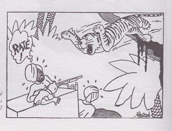 remarques: | "Jules Verne, néant" répondait Hergé interrogé sur ses lectures de jeunesse, un néant pourtant riche de coïncidences l'influence de Jules Verne (1828-1905) sur l'imaginaire de Hergé (1907-1983) est suspectée depuis longtemps - l'importance des dessins chez Jules Verne avec plus de 4000 illustrations - l'écrivain nantais connait la gloire avec la publication de 5 semaines en ballon et son nom restera associé aux éditions Hetzel auxquels il est toujours resté fidèle A) Jules Verne chez les biographes ou interprètes de Hergé à noter: l'ingratitude d'Hergé pour s'attribuer les idées des autres! mention de référence à Jules Verne dans: - Numa Sadoul, entretiens avec Hergé - Assouline, Hergé >>> 20'000 lieux sous les mers - Frank Madsen, Seriejournalen >>> pour l'étoile mystérieuse - dans les cahier "amis d'Hergé" par les chroniqueurs Pourvoyeur et Delorme >>> pour le temple du soleil B) les personnages principaux 1) Tintin - d'après Hergé lui-même, Tintin n'est psychologiquement ni moralement le portrait d'aucune personne qu'il connait, nul être n'étant à ce point parfait - Tintin est probablement au départ le portrait de son créateur, mais avec Harbert Brown, héros de l'île mystérieuse, on tient probablement un des modèles du personnage de Tintin 2) Milou - fox terrier apparu en même temps que Tintin dès la première aventure au pays des soviets, - Milou est resté physiquement pareil à lui-même au cours du temps, son nom est le diminutif du prénom de la première petite amie de Hergé: Marie-Louise - c'est dans le roman l'île mystérieuse que l'on découvre son alter ego: Top, fidèle compagnon de l'ingénieur Cyrus Smith qui accompagne Harbert Brown 3) Haddock - capitaine au long cours d'âge mûr, Archibald Haddock est le digne descendant du marin Pencroff, protecteur d'Harbert Brown dans l'île mystérieuse - c'est un être impulsif, amateur de bonne chair et fumeur invétéré qui se laisse entraîner par son enthousiasme: il est colérique mais ses emportements sont aussi brefs que spectaculaires 4) les Dupond(t) - ces jumeaux-là ne le sont en fait pas du tout, ils portent des noms différents et sont différents (les moustaches) - un détail qui rappelle aux lecteurs des 500 millions de la Bégum la description des deux géants Arminius et Sigimer, gardes du corps personnels du terrible prof. Schultze: l'un porte une barbe arrondie, l'autre une barbe taillée en accent circonflexe - toutefois on peut aussi comparer les deux Dupont(d) aux détectives Craig et Fry mis en scène par Jules Verne dans les tribulations d'un chinois en Chine ils ne sont pas futés, ont les même problèmes de langage et dans le roman se déguisent aussi en chinois! 5) Tournesol c'est en la personne de Palmyrin Rosette, personnage-clé du roman Hector Servadac que l'on retrouve les principales caractéristiques morales et physiques du personnage de Tournesol Rosette est un savant assez farfelu, mais qui se révèle très polyvalent, qui s'intéresse surtout à l'astronomie et c'est un rageur de premier ordre avec des colères rouges et explosives 6) Bianca Castafiore - chez Verne comme chez Hergé, une figure de cantatrice va symboliser la féminité: la diva napolitaine Stilla dans le château des Carpathes et la cantatrice milanaise Bianca Castafiore n.b. chez Jules Verne aussi, les femmes sont assez souvent absentes 7) Nestor - Nestor, domestique au château de Moulinsart doit subir perpétuellement le manque de tenue de Haddock à l'instar de son prédécesseur Patrice, domestique de Clovis Dardentor dans le roman du même nom 8) Séraphin Lampion - cet encombrant personnage, assureur à la Mondass, a ssure contre tout, même contre les casse-pieds de son genre - son ancêtre pourrait être William Bidulph des tribulations d'un chinois en Chine,agent principal de la compagnie d'assurances La Centenaire qui autorisait à assurer tous les risques (y compris le suicide) et dont le slogan était: "s'assurer à La Centenaire, c'est la quasi-certitude d'en devenir un soi-même" C) les scénarios - références verniennes avec les albums Tintin 1) Tintin au Congo >> 5 semaines en ballon + voyages en Afrique par 3 anglais; inspirations: la chasse aux antilopes, la cataracte du Nil, l'éléphant mort, le lion 2) les cigares du pharaon >> tour du monde en 80 jours 3) le lotus bleu le titre est tiré du roman Claudius Bombarnac (la secte secrète chinoise), mais le récit est tiré de l'actualité de l'époque 4) l'étoile mystérieuse inspiré fortement de Hector Sarvadac (le météorite) et de la chasse au météore avec le gag ultracélèbre de l'araignée 5) le secret de la Licorne récit venant droit des enfants du capitaine Grant qui doivent aussi déchiffrer trois parchemins incompréhensibles 6) le trésor de Rackham le Rouge et bien sûr c'est dans 20'000 lieux sous les mers que Hergé est allé pêcher ses idées >> p. 100 à voir les paysages sous-marins, l'attaque du requin et les scaphandres utilisés dans le roman de Jules Verne 7) objectif lune déjà dans son roman "de la terre à la lune", Jules Verne avait déjà consacré une partie de son roman aux préparatifs d'une expédition vers la lune dans un obus habité >> p. 113 par ailleurs, il est stupéfiant de constater que J. Verne avait localisé la base de départ de son projectile en Floride, près de cap Kennedy et le téléscope géant dans les montagnes Rocheuses, deux situations qui se révéleront réelles par la suite 8) on a marché sur la lune >> p. 119 comme Tournesol et ses coéquipiers, les héros de J. Verne croisent la route d'un astéroïde >> p. 124/125 la surface de la lune comme se le représentait J. Verne et Hergé 9) les bijoux de la Castafiore qui évoquent le plus grand diamant du monde dans "l'étoile du sud" durant lequel ce diamant a été avalé par une autruche D) personnages secondaires et anecdotes - le dr. Schultze (dans l'étoile mystérieuse) dont le nom pr