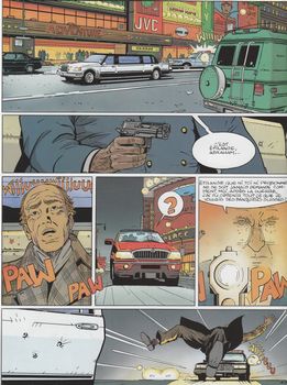 remarques: | deuxième édition, EO 1999 Larry B. Max de l'I.R.$ = International Revenue Service = le fisc américain aime à appeler hors service pour se relaxer les services de la call-girl Gloria Paradise (hors taxe?) alors qu'un citoyen suisse est victime d'un attentat après quoi, Larry est mêlé à un hold-up sur une petite boutique de food+drink >> p. 9 petite dissertation sur les grandes fortunes américaines par la suite, Larry enquête sur le meurtre du suisse, victime probablement du système bancaire suisse! la piste le mène d'abord à la charmante vipère Deborah Gaines qui aurait commandité le meurtre du suisse via un certain Loewenstein, entrepreneur juif de New York de nombreuses informations tombent dans les mains de Larry en dépouillant les déclarations fiscales des personnes concernées! >> p. 21 montrez-moi vos frais professionnels et je vous dirai qui vous êtes >> p. 23 exposé sur les comptes déshérités retenus par les banque suisses et pour en avoir l'accès, il faut livrer un certificat de décès établis par les autorités compétentes (celles d'Auschwitz par exemple!) >> p. 25 le secret bancaire suisse et la Suisse qui présente officiellement ses excuses et c'est maintenant Deborah Gaines qui a été commanditée pour liquider Larry mais sa tentative échouera et Larry réussira à démasquer la culpabilité du milliardaire Geldhof dans cette affaire n.b. Geldhof = un nom à retenir, traduction: maison de l'argent!! mais le mystère qui plane sur Geldhof reste encore à découvrir et à cet effet, Larry se rend en Suisse >> polar financier (avec nombre de références financières et fiscales dans le texte), scénario et graphisme très moyens, un genre qui veut ressembler à la série Largo Winch mais qui n'y réussit pas (imiter n'est pas égaler!) information a)né en 1965, Bernard Vrancken s'avère être rapidement un dessinateur de talent, mais il ne sera connu que pour 3 séries: I.R.$, le sang noir et H.ELL, par contre Desberg devrait être plus connu comme scénariste pour: le scorpion, Jimmy Tousseul, les petits hommes, sang noir et Jess Long b) lisant les circuits d'évasion et de blanchiment d'argent comme un pianiste virtuose une partition de Mozart, Larry dispose de tous les moyens informatiques nécessaires pour démontrer les liens entre les grosses fortunes et la grande criminalité, l'un des dossiers les plus délicats qu'il a à traiter est celui d'un richissime Juif américain connu pour son engagement dans la récupération des biens confisqués par les nazis, épluchant les comptes de ce milliardaire, Larry entame une dangereuse remontée aux mystérieuses origines de son immense fortune.. |