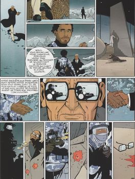 remarques: | - Jura français, 1943, la frontière suisse est fermée, le juif Geldhof avec sa famille tente d'entrer en Suisse, le père et la mère seront abattus, mais le père réussit à donner à son fils Moshe le numéro de son compte bancaire en Suisse; Moshe sera le seul survivant et sera interné à Auschwitz - en attendant en 2000 à New York, Geldhof est libéré sous caution tandis que Larry assiste à Berne à un match de hockey sur glace >> p. 11 le Polar Bears Bern club dont Lenni, la fille de Geldhof fait partie - rencontre un peu brutal entre Larry et Lenni Geldhof >> p. 19 les plaques d'immatriculations automobiles sont bien suisses mais la Porsche de Larry est immatriculée en Allemagne avec le no S.MW.1378 - Larry, le bien-aimé sur les hauteurs de Berne >> p. 27 aperçu sur la ville de Berne (plutôt correct!) - la stratégie Hagen: des SS se seraient fait passer pour des survivants juifs et auraient eu accès à certains compte déshérités n.b. le SS Hagen a bien existé mais pas sa stratégie n.b. Hagen est aussi un personnage mentionné dans les Niebelungen >> p. 32/33 course-poursuite sur l'autoroute du Léman - le dernier acte se joue à Zermatt où Geldhof est démasqué: c'est un ancien nazi qui a pris l'identité du vrai juif Geldhof mort à Auschwitz et en forçant Geldhof à révéler le numéro du compte bancaire, le SS Geldhof s'est emparé de l'énorme fortune du juif il l'a fait fructifier et avec son ami SS le physicien nazi Otto, tous deux projetaient ni plus ni moins de détruire l'état d'Israël avec une bombe nucléaire, ils seront abattus par le Mossad avant d'avoir pu mettre leur plan à exécution et Larry pourra reprendre ses discussions amoureuses avec la call-girl Gloria Paradise >>> le graphisme de Vrancken reste tout juste encore acceptable, l'idée du scénario est intéressante mais Desberg pour le texte ne s'use pas trop les méninges, malgré quelque documentation sur le service bancaire suisse |