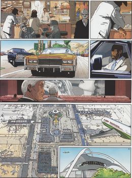 remarques: | Larry assiste à un concert de Stravinsky dirigé par sa soeur Lane tandis qu'un ancien truand du milieu de la drogue, Ryan Ricks, devenu un financier véreux, revient aux USA en provenance de Mexico - il est aussitôt repéré par l'IR$ et par le DEA (drug enforcement administration) >> p. 14/15 petit exposé sur Ryan Ricks, devenu spécialiste dans le recyclage et le blanchiment du sale argent de la drogue - Larry est mis sur l'affaire en collaboration avec Ella Hidalgo, une belle noire surnommée Blue Ice alors qu'un agent du DEA est déjà soupçonné d'être de connivence avec la pègre - le DEA et l'IR$ se posent des question sur l'arrivée de Ricks à Los Angeles, son arrivée déclanchant une série de règlements de compte parmi les trafiquants de drogue >> p. 22 la VW Cox d'Ella Hidalgo qui devient une voiture de choc! - grâce à une taupe, on commence à connaître les intentions de Ricks, il veut racheter, pour un groupe inconnu, le cartel de la drogue de Los Angeles à Dion Monterey, de la dynastie de la coke, un des patrons du cartel californien qui s'amuse maintenant à liquider ses complices pour gagner le gros lot >> p. 36 selon Ricks, le cartel sera désormais géré comme toute entreprise moderne respectant les règles de l'économie mondiale! - une course-poursuite se déclanche pour arrêter Ricks et Monterey, Monterey sera abattu par les forces de l'ordre mais Ricks réussit à s'échapper et on se demande toujours qui finance Ricks pour l'achat de ce cartel qui demande un énorme financement >> p. 42 la voiture Ford Mustang de Larry qui saute de toit en toit!! Larry a toutefois retrouvé la piste de Ricks et la prochaine destination sera le Mexique >> un épisode qui ne change guère le style de la série, un assez bon graphisme mais un texte peu élaboré |
