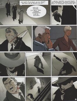 remarques: | >> p.4/5 introduction avec un exposé sur le régime de l'ex-dictateur Sumadayo - Larry Max, le chevalier blanc du fisc, l'agent de l'IR$, poursuit son enquête mais il est en grand danger de tomber dans le piège de Silicia, la tueuse - toutefois Larry démasquera à temps le piège de la tueuse et réussit à mettre à l'abri la vraie Gloria Paradise mais il ne peut empêcher Silicia de prendre la fuite, ce ne sera que partie remise! -l'enquête continue et Larry découvre que Silicia fait chanter des politiciens de Washington, c'est aussi une grande corruptrice mais son patron est encore inconnu - le dénouement final se jouera dans un duel serré entre Larry et Silicia ainsi qu'avec le grand corrupteur, le commanditaire de Silicia, qui n'est autre que le fils de Sumadayo qui veut venger son père en corrompant des politiciens américains, il les appellent les missionnaires du capitalisme et les accusent d'avoir eux-mêmes, avec leur argent sale, corrompu les structures sociale et économiques de son pays - Silicia et Sumadayo junior y perdront leur vie mais la jolie Gloria Paradise gardera la sienne, gageons qu'à l'avenir, elle pourra continuer d'animer les conversations avec Larry Max >> un album qui reste toujours dans la petite moyenne malgré une idée qui aurait pu prendre un développement intéressant vu la médiocrité de cette série, ce sera ici le dernier album collectionné de la série qui toutefois continue de 2005 à 2012 avec 8 autres albums ainsi que deux autres séries parallèles: IR$ all watcher et IR$ team n.b. étonnamment, les huit premiers albums EO de la série ont une côte assez élevée au BDM la suite des séries: a) I.R.$. - tome 7 corporate America (2005) - tome 8 la guerre noire (2006) - tome 9 liaisons romaines (2007) - tome 10 la loge des assassins (2008) - tome 11 le chemin de Gloria (2009) - tome 12 au nom du président (2010) - tome 13 l'or de Yamashita (2011) - tome 14 les survivants de Nakin (2012) - tome 15 plus-values sur la mort (2014) - tome 16 options sur la guerre (2015) - tome 17 Larry's paradise (2016) - tome 18 Kate's hell (2017) - tome 19 les seigneurs financiers (2018) - tome 20 les démons boursiers (2019) + un album hors série: les dossiers Max (2019) b) I.R.$. all watcher (une série dérivée de I.R.$, all watcher se concentre dans des one shots sur certains personnages secondaires rencontrés dans la série mère, la série complète, constituée de sept tomes, décrit une enquête sur une entité (organisation ou individu?) qui fait disparaître à son profit des sommes énormes, tel un "trou noir financier" - tome 1 Antonia (2009) - tome 2 la nébuleuse Roxana (2010) - tome 3 Petra (2010) - tome 4 la spirale Mc Parnell (2010) - tome 5 Mia Maï (2010) - tome 6 la théorie des cordes fiscales (2011) - tome 7 le trou noir financier (2011) = dernier volume paru c) I.R.$. Team (une série en 4 tomes dont le T4 sortira à l'occasion de la Coupe du Monde de Football en 2014) - tome 1 football connection (2013) - tome 2 wags (2013) - tome 3 goal business (2014) - tome 4 le dernier tir (2014) tous ces albums ne sont plus collectionnés ici |