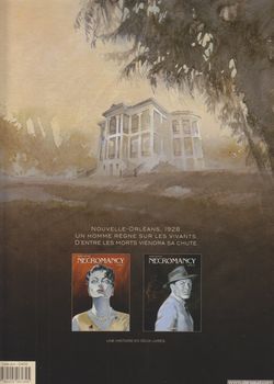 remarques: | déclarations du livre Necromancy: - les sels essentiels de l'humaine-poussière se peuvent préparer de telle façon qu'un homme ingénieux puisse ressusciter la forme d'un de ses ancêtres défunts à partir de ses cendres - mais l'invocation par telle méthode des figures mythiques de l'ancien temps, et parmi elles du nécromant lui-même, demeure incertaine et périlleuse - l'histoire de Joan Boudreaux, de ses ancêtres et de la Nouvelle Orléans et surtout du mort-vivant Henry Lindsay, un docker qui était l'amant de l'épouse de Friedrich Boudreaux, ancêtre de Joan, qui règnait en potentat sur la Nouvelle Orléans Lindsay chercha à nuire Friedrich et découvrit que celui-ci se faisait livrer des cadavres pour effectuer sur eux de curieuses expériences, Lindsay avertit la population et Friedrich fut condamné au bûcher comme sorcier - plus tard, Auguste, arrière-petit fils de Friedrich et frère de Joan, avec Jeff, fils de Gordon, se livrèrent également à des activités démoniaques, Joan déclara son frère fou et le fit interner à l'asile de Bedlam >> p. 18 la morgue de New Orléans - en attendant d'éclaircir le mystère des momies mésopotamiennes, Gordon Devries va liquider le gang de Drake et Viper, mais il apprendra que le parrain Santo Vasmonte soutenait le gang du temple et Santo réussit à convaincre la police de faire arrêter Gordon Devries qui doit lui-même maintenant prendre la fuite - et l'histoire finit avec le dieu Necromant, représenté par le métis mort-vivant Cortes qui détient prisonnière l'esprit de Brooke Adams, l'épouse de Gordon et celui-ci doit maintenant faire disparaître le dieu Necromant - après avoir utilisé de mystérieuses incantations, Gordon vaincra finalement Necromant, mais son fils Jeff y perdra la vie et Gordon, atteint de folie, rejoindra Auguste dans l'asile de Bedlam >> p. 44/45 le combat de Gordon contre Necromant >>> ce deuxième volume est un peu plus étoffé que le premier, mais on ne connaîtra toujours pas vraiment l'utilisation des momies, le scénario reste donc toujours aussi embrouillé avec relativement peu de texte, mais avec un graphisme qui reste très respectable et un très bon jeu de couleurs, ce deuxième volume termine la série qui n'aura plus de suite |