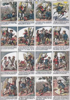 remarques: | - la bande dessinée est aujourd'hui appelée "neuvième art", non sans raison car les créateurs ont à toutes les époques déployé une créativité étourdissante, imaginant une ribambelle de personnages bien vivants et indémodables, certains sont nés il y a un siècle, d'autres hier riez, rêvez ou grincez des dents avec la famille Illico, Bécassine, Félix le chat, Mickey, Snoopy, Tintin, Batman, Astérix, Blueberry, Corto Maltese, les Frustrés et tant d'autres... - bédéphiles et bédéphobes peuvent bien s'affronter, la bande dessinée a aujourd'hui sa place dans toutes les structures sociales, voici un livre incontournable, richement illustré, bourré de documents il constitue la rétrospective de cent ans de bande dessinée, des gags illustrés du début du siècle à l'underground contemporain, en passant par les "comics" et les albums déjà classiques A/ 1900-1909 les prémices de la BD - l'ancêtre des "planches" de BD: l'imagerie d'Epinal (précédemment imagerie Pellerin dès 1822) - l'ancêtre de la bande dessinée moderne: Rodolphe Töpffer avec des figures tel m. Festus et m. Cryptogame - la famille Fenouillard par Christophe (1900) - the Yellow Kid, un gamin chauve en chemise de nuit jaune vif, dans Hogan's alley by Richard Outcault (1896-1898) - Max und Moritz en Allemagne par Wilhelm Busch (1865), repris par Rudolph Dirks dans the Katzenjammerkids et dessiné par Harold Knerr pendant 37 ans (1912-1949) n.b. le mot "cartoon" existe aux USA depuis 1843, année de publication du Cartoon No. 1, un croquis satirique de John Leech (Punch dès 1840) - 1902 Outcault lance dans le New York Herald Buster Brown, un vrai petit diable (1902-1909) n.b. aux USA, la presse est aux mains d'investisseurs de génie, tel William Randolph Hearst (à l'origine du comic strip dans le New York Morning Journal, fondateur du KFS = king feature syndicate) et Joseph Pulitzer (New York World) qui se livrent à une concurrence féroce pour la bande dessinée 1903, des planches de plus en plus élaborées: - la Jeunesse illustrée avec Benjamin Rabier, Belles Images, Fillette, etc 1904 les professionnels s'affirment: - Maud the Mule par Frederick Burr Opper - the new Lyweds and their baby par McManus - explosion de la BD britannique avec Comics Cut, the Times Pictures Postcards, Puck, etc 1905 naissance d'une star française: Bécassine dans Semaine de Suzette dessinée par Pinchon, la même année mort de Jules Verne 1906 début de la série little Nemo in Slumberland par Winsor McCay dans le New York Herald le rêve permet à McCay de donner aux gens et aux choses des dimensions étonnantes, parfois plus vraies que le réel 1907 la presse du monde entier mise sur la bande dessinée, création des suppléments dans les grands quotidiens (sunday comics ou sunday pages) - Mutt and Jeff de Bud Fisher - la gente menuda dans l'ABC, journal espagnol - Wee Willie Winkie's world de Lyonel Feininger, dessinateur d'origine germanique dans le Chicago Sunday Tribune 1908 début des Pieds Nickelés de Louis Forton, repris en 1948 par Pellos - Jo Valle concocte l'Espiègle Lili dont le premier épisode parait dans Fillette - naissance de la BD au Japon dérivée des "makimono" = rouleaux d'images (5ème et 6ème siècle) - en Italie, le Corriere dei piccoli lance les "fumetti", littéralement les "bulles" B/ 1910-1919 la guerre sur tous les fronts c'est une véritable guerre sur le front des "comics" que se livrent les groupes de presse américains, les techniques sont affinées avec des styles très novateurs tel the Gumps par Sidney Smith dans le Chicago Tribune 1910 Krazy Kat par Herriman,une chatte amoureuse d'une petite souris (Ignatz) d'abord en noir et blanc, puis en couleur 1912 naissance des "syndicates" américains les "syndicates" deviennent propriétaires des séries et les dessinateurs/scénaristes seront leurs employés (en plus du KFS, King feature syndicate, il y a l'UFS, le New York News syndicate, l'United Feature, etc - création de Polly and her pals, une jeune fille délurée dessinée par Cliff Sterrett 1913 la famille Illico entre en scène (bringing up father) par McManus, décrivant une famille avec Jiggs = Illico tyrannisé par sa femme Maggie et sa fille cette série connaîtra une réussite énorme et sera une des BD américaines les plus connues 1914 création en Grande-Bretagne dans le magazine "the Rainbow" de Billy Bunter (Léa Glouton) par le dessinateur F. Richard - début de la presse catholique en France avec Bernadette (Bonne Presse) 1915 la logique de l'absurde avec Boob Mac Nutt par Rube Goldberg 1916 les dessinateurs européens se lancent peu à peu dans la BD tel Benjamin Rabier, dessinateur animalier avec Coin Coin le canard, dans la Jeunesse Illustrée et dans la Semaine de Suzette 1917 - the Gumps deviennent la famille Mirliton en France les structures traditionnelles et les relations familiales sont des valeurs en baisse, les comics mettent de plus en plus en scène des ménages en crise ou autres chamailleries 1918 les temps modernes avec les comics tel que: - Gasoline Alley de Frank King et Barney Google de Billy Debeck 1919 deux créateurs campent le décor où évolueront des personnages mondialement célèbres: Zorro par Johnston McCulley et Popeye par E.C. Segar dans une série surnommée the thimble theatre avec Popeye, Olive Oil, Castor et Ham Gravy C/ 1920-1929 une longueur d'avance pour les Etats-Unis, la production américaine de séries se diversifie énormément alors qu'en France, l'audience est encore limitée 1920 début de Winnie Wrinkle the breadwinner, une jeune fille avec son frère Perry (en France: Bicot président de club) par Martin Branner 1921 l'australien Pat Sullivan réalise le strip Félix the Kat, en Suède, Oscar Jacobsson commence Adamson (strips courts et sans paroles) 1922 début du roman-photo, cousin de la bande dessinée, le lagrime d'oro (les larmes d'or), un roman dessiné paru en 1946 dans la revue italien