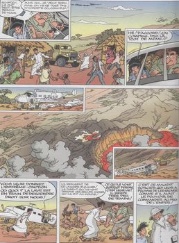 remarques: | édition originale, couverture ancienne et contenant le carnet de route de Jimmy sur le Congo Lana, la petite amie de Jimmy, veut initier celui-ci à la sorcellerie africaine >> p. 4/5 l'histoire de Dieu et de la création du monde avec un noir, un blanc et un jaune après une éruption volcanique au Baragongo, deux missionnaires s'occupent d'organiser les premiers secours, Schatzy et Jimmy se joignent à eux, l'un des missionnaires s'opposent radicalement aux croyances rituelles des indigènes, durant cette opération, nos amis tombent sur une profonde crevasse où se trouveraient des reliques africaines anciennes >> p. 18 description de la grande faille d'Afrique mais nos amis sont confrontés avec le sorcier de Baragongo qui essaie lui aussi de récupérer les reliques, dont une statue avec le visage de dieu >> p. 20 la croix du Christ décorée par le sorcier l'histoire se termine en un duel entre l'un des missionnaires et le sorcier qui se disputent tous les deux pour le visage de Dieu qui se révèle être un dieu avec le visage noir, ce que le missionnaire blanc ne veut pas rendre public n.b. si le visage de dieu est bien montré, l'auteur ne montre pas les jurons au complet: nom de ....(sans évoquer dieu) >>> un album très moyen, entremêlant des rivalités religieuses avec des recherches géologiques, pas le meilleur album de la série mais qui reste acceptable |