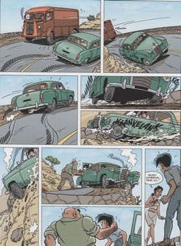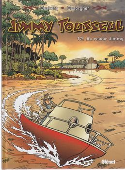 remarques: | douzième tome des aventures de Jimmy Tousseul qui s’intitule sobrement "au revoir, Jimmy" parce que la série se clôt définitivement avec quelque regret, tellement les péripéties du jeune homme étaient fraîches et réjouissantes, avec cette insouciance et cette envie de bonheur qu’il développa tout au long de ces épisodes situés dans le continent africain des années 60 mais Jimmy a vieilli au long de ces albums et l'Afrique a changé "le paradis de papa, c’est fini!" et au plaisir permanent de la vie de tous les jours des premiers albums succède depuis quelques temps déjà une vision plus sombre, plus réaliste sans doute, où la politique et les affaires prennent le dessus sur les aspects quotidiens coup d’état, mercenaires, exil des populations affamées, guerre civile, peuplent cet album plutôt violent, où l’on tue et où l’on meurt beaucoup heureusement Jimmy et son ami Schatzy y croient encore, pour l’amour de Suzy, enlevée devant leurs yeux pour être rendue à son dictateur de père et qu’ils veulent retrouver par amour de l’Afrique aussi, parce qu’ils lui doivent bien ça, pour le plaisir qu’elle leur a procuré mais ils le savent bien, et nous aussi, plus rien ne sera comme avant! entretemps, la série est reprise et rééditée par Glénat avec une nouvelle couverture pour les albums mais elle ne sera plus collectionnée ici, car la série prend une tournure moins intéressante tant pour le scénario que pour le graphisme d'ailleurs il n'y aura plus que 3 nouveaux albums à paraître refugiés dans le midi de la France avec Jimmy et Susy, Schatzy se met à la recherche des mercenaires qui ont détruit son paradis animal alors que Kabeja envoie ses mercenaires en France pour récupérer sa fille Susy > p. 10 Schatzy qui prépare une choucroute congolaise!! le traître Kott réussira à s'emparer de Susy et l'emporte à Kasabubu, mais il est suivi de près par Jimmy et Schatzy qui ont pris l'identité de deux mercenaires Jimmy réussira à reprendre Susy à son père et à se mettre à l'abri dans un pays voisin alors que Schatzy retrouve son fidèle lion Hermann >> ce n'est qu'un au revoir provisoire et Jimmy sera de retour dans son Afrique chéri dans la nouvelle série de Glénat qui ne durera que 3 albums et la série reprise par Glénat n'aura plus le charme des premiers albums de Jimmy Tousseul les trois nouveaux albums + la réédition des anciens albums avec nouvelle couverture: 2004 blanc et noir, 2006 le piège, 2008 la croisière assassine(?) albums non collectionnés ici n.b. au 4ème plat les albums ne mentionnent plus les sculptures africaines des anciens albums n.b. Desorgher passe les 12 premières années de sa vie au Congo, une expérience qui aura une importance déterminante sur sa carrière de dessinateur |
