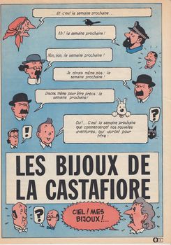 remarques: | classeur 460A les albums Tintin A) les maisons d’édition - Moulinsart, Casterman, journal A Suivre - les sites Internet dont Tintin.qc.ca B) albums Tintin 1) - couvertures HT albums N&B - les cases mémorables C albums Tintin 2) - liste et petit résumé des albums Tintin (24 titres parus) D) albums Tintin 3) - répertoire et analyse des albums Tintin y compris l'Alph-Art avec Archives (3 albums) F) pages des aventures de Tintin (extraites du Journal Tintin) - au pays de l’or noir - on a marché sur la lune (planches inédites en album, avec le revolver de Tintin et les Dupont/d sur la lune)) - l’affaire Tournesol - coke en stock - Tintin au Tibet - les bijoux de la Castafiore + Jo et Zette, stratonef H22 G) - couvertures des albums Tintin en N&B - diverses cartes postales Tintin H) Journal Tintin Spécial hommage à Hergé - no 11bis (2237) de mars 1983 + divers catalogues Drouot (ventes aux enchères) dont catalogues 1.2.1992 et 10.7.1992 et catalogue Tintinomania III 28.5.1994 + journal Bo Doï no du 15 janvier 1999 "Hergé par Jacques Martin" annexes - magazine Tintin 11bis, hommage à Hergé 15.3.1983 - statue de Tintin et Milou (parc de Wolvaendel à Uccle) - préavis pour les bijoux de la Castafiore - catalogue Drouot 10.7.1992 Information liste des 24 albums sur les aventures de Tintin titre, journal, album 1, album 2, album 3: A) EN FRANCAIS Tintin au pays des Soviets 1929 - 1930 1930 Tintin au Congo 1930 - 1931 1931 1946 Tintin en Amérique 1931 - 1932 1932 1946 Les Cigares du Pharaon 1932 - 1934 1934 1955 Le Lotus Bleu 1934 - 1935 1936 1946 L'Oreille Cassée 1935 - 1937 1937 1943 L'Île Noire 1937 - 1938 1938 1943 1966 Le Sceptre d'Ottokar 1938 - 1939 1939 1947 Le Crabe aux Pinces d'Or 1940 - 1941 1941 1943 1960 ? L'Etoile Mystérieuse 1941 - 1942 1942 Le Secret de la Licorne 1942 - 1943 1943 Le Trésor de Rackham le Rouge 1943 1944 Les Sept Boules de Cristal 1943 - 1944 1948 Le Temple du Soleil 1946 - 1947 1949 Au Pays de l'Or Noir 1939 - 1940 Au Pays de l'Or Noir (suite) 1948 - 1950 1950 1971 Objectif Lune 1950 - 1952 1953 On a marché sur la Lune 1952 - 1953 1954 L'Affaire Tournesol 1954 - 1956 1956 Coke en Stock 1956 - 1958 1958 1967 Tintin au Tibet 1958 - 1959 1960 Les Bijoux de la Castafiore 1961 - 1962 1963 Vol 714 pour Sydney 1966 - 1967 1968 Tintin et les Picaros 1975 - 1976 1976 Tintin et l'Alph-Art 1986 2004 B) EN ANGLAIS 1 Tintin in the Land of the Soviets 1929–1930, 1930 at first Hergé prevented this book's republication, it has never been redrawn in a colour edition 2 Tintin in the Congo 1930–1931 1931 1946 re-published in colour and in a fixed 62-page format 3 Tintin in America 1931–1932 1932 1945 4 Cigars of the Pharaoh 1932–1934 1934 1955 5 The Blue Lotus 1934–1935 1936 1946 6 The Broken Ear 1935–1937 1937 1943 7 The Black Island 1937–1938 1938 1943, 1966 8 King Ottokar's Sceptre 1938–1939 1939 1947 9 The Crab with the Golden Claws 1940–1941 1941 1943 10 The Shooting Star 1941–1942 1942 book 10 was the first to be originally published in colour and, along with books 11 to 15, set a middle period for Hergé marked by war and changing collaborators 11 The Secret of the Unicorn 1942–1943 1943 12 Red Rackham's Treasure 1943 1944 13 The Seven Crystal Balls 1943–1946 1948 14 Prisoners of the Sun 1946–1948 1949 15 Land of Black Gold 1948–1950 1950, 1971 16 Destination Moon 1950–1952 1953 Books 16 to 23 (and revised editions of books 4, 7 & 15) are creations of Studios Hergé 17 Explorers on the Moon 1952–1953 1954 18 The Calculus Affair 1954–1956 1956 19 The Red Sea Sharks 1956–1958 1958 20 Tintin in Tibet 1958–1959 1960 21 The Castafiore Emerald 1961–1962 1963 22 Flight 714 1966–1967 1968 23 Tintin and the Picaros 1975–1976 1976 24 Tintin and Alph-Art 1986 2004 Hergé's unfinished book, published posthumously, apart from the series, a comic album supervised by, but not written by, Hergé was released based on the film Tintin et le lac aux requins. • Tintin and the Lake of Sharks (1972) Hergé attempted and then abandoned one comic album: • Le Thermozéro (1958) C) EN ALLEMAND Tim im Lande der Sowjets Tim im Kongo Tim in Amerika Die Zigarren des Pharao Der Blaue Lotos Der Arumbaya-Fetisch Die schwarze Insel König Ottokars Zepters Die Krabbe mit den goldenen Scheren Der geheimnisvolle Stern Das Geheimnis der Einhorn Der Schatz Rackhams des Roten Die sieben Kristallkugeln Der Sonnentempel Im Reiche des schwarzen Goldes Reiseziel Mond Schritte auf dem Mond Der Fall Bienlein Kohle an Bord Tim in Tibet Die Juwelen der Sängerin Flug 714 nach Sydney Tim und die Picaros Tim und die Alpha-Kunst |
