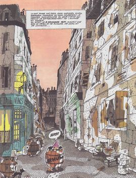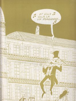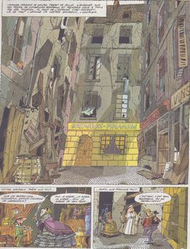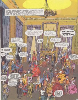 remarques: | série comico-littéraire, de la BD Beaux-Arts, scenario et graphisme plutôt original, avec quelque ressemblance à celui de Brétécher trois personnages principaux dans ce récit: 1/ le duc de Saint-Piastre, un aristocrate raffiné 2/ Monsieur de Maupas, préfet de police 3/ le conseiller Barassol, ami de Saint-Piastre l'Empire sous Napoleon III le Petit: le duc de Saint-Piastre, aristocrate ruiné et le conseiller Barassol, ami de St-Piastre préparent un complot avec les plans d'un coup d'état cachés dans un buste de l'empereur que Barassol a égaré alors que Monsieur de Maupas, le préfet de police les surveille >> toute l'histoire se passe dans la quête du bon buste de l'empereur avec gaffes et calembours, excellente histoire pour se détendre et basée sur des faits réels: l'opposant no 1 de Napoleon III: Henri Rochefort (imitant d'ailleurs Victor Hugo) fit entrer de Belgique en France, cachés dans des bustes en plâtre de Napoleon III, de violents pamphlets antibonapartistes annexes - couverture de l'album - page de garde - extraits de page Information A) le coup d'État du 2 décembre 1851 est l'acte par lequel, en violation de la légitimité constitutionnelle, Louis-Napoléon Bonaparte, président de la Deuxième République française depuis trois ans, conserve le pouvoir à quelques mois de la fin de son mandat alors que la Constitution de la Deuxième République lui interdisait de se représenter B) le récit: - le duc de Saint-Piastre a quelques problèmes: dont celui du jeu, joueur devant l’Eternel, il s’est emparé d’un buste de l’Empereur, ce buste est en plâtre et ne servira qu’à honorer une dette de jeu - mais voilà: le conseiller de l’Empereur, le nommé Barassol a caché dans ce buste le plan d’un complot visant la tête de l’Etat, et voilà que Barassol est dans tous ses états, car il ne retrouve plus le buste - dandy et esthète, le duc, embêté, lui offre ses services et c’est ainsi que, ensemble, ils partent à la recherche du buste - c’est d’abord la vieille maison d’un usurier auquel ils parleront, mais de fausse piste en fausse piste, nos amis ne savent plus où donner de la tête, surtout qu’ils sont surveillés: Maupas, le chef de la police, les a en point de mire |