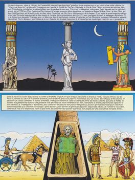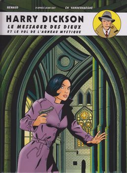 remarques: | titre complet: le messager des dieux et le vol de l'agneau mystique, Renaud alias Renaud Denauw a remplacé Chapelle comme dessinateur avril 1934, à la cathédrale Saint-Bavon de Gand, vol par Georgette et sa bande de deux panneaux dont celui des juges intègres faisant partie du retable de l'agneau mystique realisé en 1432 par les frères-peintres Hubert et Jean Van Eyck, ces deux tryptiques (Saint-Jean Baptiste et les Juges Intègres) devraient contenir le secret d'un mystère n.b. le vol avait été commandité par des membres du IIIème Reich qui veulent décrypter les ideogrammes et autres signes mystérieux que contient le rétable (retable >>> voir information) sollicités par le clergé belge, Harry Dickson et son ami Tom sont mis sur l'affaire qui se révèle plutôt complexe, car ce décor détiendrait la clé d'un mystère qui bouleverserait l'ordre religieux la piste mène d'abord à Florence par train >> p. 10 le luxueux wagon Pullman une enquête genre quête du Graal avec une trilogie du pinceau, du sabre et du goupillon autour des chiffres trois où l'on trouve entre autre les mots en hébreu, grec et latin avec trois papes règnant sur trois mondes confrontés avec les trois bêtes de l'apocalypse, première séance au musée "les Offices" à Florence qui abrite l'un des plus célèbres patrimoines artistiques du monde avec le prof. Leonardo d'Eco et son assistante Sofia Sarfatti qui commence une liaison amoureuse avec Tom >> p. 12 les Van Eyck étaient prêtres mais aussi diplomates >> p. 13 description de l'agneau mystique et les quatre inscriptions laissées par les Van Eyck: la vie sans mort, la jeunesse sans vieillesse, la joie sans tristesse et la sécurité sans terreur >> p. 14 les religions abrahamiques: l'Islam avec le coran, le Judaïsme avec la thora et le Christianisme avec la bible >> p. 16 le tabac de Dickson: du Navy Cut et Dickson qui joue du revolver toujours en fumant sa pipe >> p. 17 l'Isotta Fraschini au luxe raffiné qu'on surnommait la Rolls Royce italienne et la Delage D8 >> p. 19 arrivée imprévue de deux détectives d'Interpol: Dupont et Dupond qui enquête sur l'affaire du pont, mais on ne nous les montre pas >> p. 21 retour dans les Cotswold en Angleterre chez Sir Steven, ancien patron du MI6, dissertation sur Lawrence d'Arabie et les 7 piliers de la sagesse puis départ pour Jérusalem (le retable mène sur plusieurs pistes) >> p. 28 Dickson et Tom déclanchent une émeute parmi les arabes nationalistes >> p. 29 les Black Watch = troupes anglaises d'occupation à Jérusalem visite auprès d'un copte égyptien (n.b. le nom copte désignerait une fleur du désert) puis l'enquête les conduit encore au Sinaï au monastère de Sainte-Catherine abritant une collection de momies qui ont survécu miraculeusement durant les siècles dont celle de >> p. 37 d'Hermès Trimégiste (= le messager des dieux) qui disposait du Corpus Hermeticum = secret des secrets ou lettre d'Aristote à l'origine de formules magiques et de connaissance secrète qui aurait été transmise sur une table d'émeraude ou autre table de la loi et de la vision du monde depuis Alexandre à Napoléon en passant par les croisades et par Philippe le Bon, protecteur des frères Van Eyck trahie par la jolie Sofia, alliée à Georgette Cuvelier déguisée en nonne catholique, nos amis sont sur le point d'être devancés dans la découverte de la fameuse table dissimulée dans la cave d'une basilique située à la place St-Marc à Venise, Sofia sera arrêtée, mais Georgette bien sûr réussit à prendre à nouveau la poudre d'escampette retour à Gand/Bruges où l'agneau mystique continue à traverser l'histoire, mais sans que le tableau des juges intègres ait été retrouvé et décrypté >> un récit didactique mêlant une enquête policière sur fond historico-religieux avec un thème artistique, la lecture en est quelque peu ardu, mais bien intéressante avec le graphisme de Renaud qui, sans égaler les premiers dessins de Zanon, est parfaitement respectable, on regrette surtout les nombreuses jolies voitures retro dessinées par Zanon, un récit en tout cas où Dickson joue au pigeon voyageur (Belgique, Florence, Londres, les Cotswolds, Jerusalem, le Sinaï, Alexandrie, Venise et retour en Belgique) nomenclature - apocryphe = a) que l'Église ne tient pas pour canonique b) dont l'authenticité est douteuse ou niée - sémantique = étude du sens, de la signification des signes - sémiotique = théorie générale des systèmes de signes - sahidique = dialecte copte de Haute-Égypte - hermétisme = a) ensemble des doctrines ésotériques des alchimistes b) caractère de ce qui est incompréhensible, obscur annexes - couverture de l'album - retable de l'agneau mystique - extrait de page - adoration de l'agneau mystique - monastère Sainte-Catherine du Sinaï - trois symboles du Corpus Hermeticum Information 1/ le retable (du latin retro tabula altaris : en arrière d'autel) est une construction verticale qui porte des décors sculptés et/ou peints en arrière de la table d'autel d'un édifice religieux; - le retable simple est composé de trois parties principales: la caisse ou huche qui détermine la forme de l'ensemble, les volets peints qui s'y adaptent, et la prédelle peinte ou sculptée, parfois munie de volets peints sur laquelle il repose 2/l'adoration de l'Agneau mystique ou Autel de Gand, achevé en 1432, est un polyptyque peint sur bois, un chef-d'œuvre de la peinture des primitifs flamands depuis 1986, il est présenté dans l'ancien baptistère de la cathédrale Saint-Bavon de Gand, transformé en chambre forte, à la suite de vols répétés. - commandé par Joost Vijdt, riche marguillier de l’église Saint-Jean (devenue depuis la cathédrale Saint-Bavon), pour la chapelle privée de sa femme, le polyptyque est commencé par Hubert van Eyck et terminé par Jan van Eyck après la mort de son frère en 1426, il est placé le 6 mai 1432 sur l’autel de