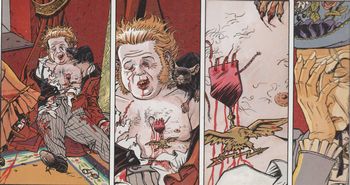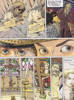 remarques: | 1er volume d'une série mi-fantastique, mi-historique avec la mort qui surgit à chaque page, un scenario du diable et un excellent graphisme d'un nouveau genre France 1870, la guerre est déclanchée avec la Prusse et dans le pensionnat Froidecoeur aux environs de Paris, l'horreur s'installe avec la mystérieuse pensionnaire de la chambre 27 qui distribue des ritournelles, des prunelles et des livres de chair >> p. 5 la bague du diable qui représente le pouvoir pour celui qui la porte >> p. 9 les bons biscuits de la Froidecoeur datant peut'être de la révolution >> p. 13 la chambre 27, la chambre aux rats (qui prennent d'ailleurs une grande part au récit) >> p. 29 la décoration diabolique >> p. 45 le pendu décoré, une victime de la complice du diable (de la chambre 27) qui coud une médaille sur la poitrine de ses victimes (médailles appelés fleurs de peau) >> drame en huit clos dont les personnages principaux: Nicolas, Anaïs, Madeleine, dame Froidecoeur, les trois instituteurs et les allemands qui occupent le pensionnat Information dans une histoire merveilleusement orchestrée où fantastique et romanesque ont la part belle et où le réalisme historique est traité avec une diabolique habileté, Dufaux attise une implacable intrigue et permet à Martin Jamar d'imposer un graphisme épatant Martin Jamar, dessinateur aussi de double masque, François Jullien et Jessica Blandy Jean Dufaux, un scénariste prolifique avec entre autres: Complainte des landes perdus, Barracuda, le bois des vierges, Croisade, Djinn, Fox, Giacomo C, Murena, Rapaces et Jessica Blandy |