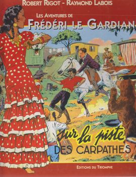 remarques: | les aventures de Frédéri le gardian ont paru dans Coeurs Vaillants (1950) et en partie dans les albums Fleurus (collection fleurdor) de 1954 à 1959 dans cet épisode, rivalité entre les violonistes Marco Tuleski et Maka Roly (rien à voir avec Maca Roni) Ulysse Galoubet (l'ami de Frédéri le gardian, dompteur de chevaux sauvages), qui ressemble beaucoup à Maka Roly, un violoniste célèbre, est enlevé pour imiter l'artiste et le déshonorer Frédéri avec son ami Zoltan, le tzigane, commence une enquête qui les mènera dans la capitale des tziganes sur la piste des Carpathes le monde du cirque, les gens du voyage dans une longue chevauchée à travers l'Europe Centrale pour arracher Ulysse à ses ravisseurs et à son terrifiant gardien: un ours géant des Carpathes >> p. 14 un chrétien s'en remet pour son avenir à la toute puissance de Dieu >> p. 21 un cheval blanc qui en fait voir de toutes les couleurs! >> p. 31 le méchant bandit Rudolph >> p. 45 le remède contre la fièvre: un foie et une langue de grenouille broyés avec un scarabée dans de l'eau de vie (authentique recette parait-il) >>> des aventures gentilles, naïves et très très chrétiennes dans le magazine très catholique Coeurs Vaillants qui est resté très connu grâce à la publication des aventures de Tintin durant plusieurs années les histoires de Frederi sont toutefois assez bien dessinées par Rigot dessinateur aussi de Chantal, le corsaire de Dieu (= Jean-Marie Robert de la Mennais 1780-1860) et les rapaces Information autres bandes dessinées chez l'éditeur Triomphe: - Thierry de Royaumont (Forget) - Jesus de Nazareth (Pétillot) - Yvan des Valdaï (Pétillot) - Bill Jourdan (Pétillot) - Bibiche (Blanchard) - Oscar Hamel et Isidore (Breysse) - Fripounet et Marisette (Bonnet) - Titounet et Titounette (Marie-Mad) - Sylvain et Sylvette (Cuvillier) - Gilbert de Pontans (Pierdec) - chevalier de Saint-Clair (Brochard) - Zephyr (Brochard) - Alex et Eureka (Brochard) - Marie-Antoinette (Brochard) - le masque de fer (Brochard) - Baudoin IV de Jerusalem (Pierdec) - avec Charette (Capo) - Thorios (Kiefer) - avec Guy de Larigaudie (Kiefer) - Moky et Poupy (Bussemey) - Yann le vaillant (Gloesner) |