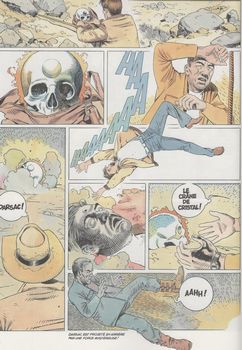remarques: | dessinateur Sicomoro, de son vrai nom Bruno Brunetti et scénariste Cartier (= Claude Moliterni) histoires placées sous le titre Marc Jourdan et vaguement inspirées de Rouletabille par Gaston Leroux Sicomoro a aussi rédigé les séries Lumière froide avec Makyo comme scénariste ainsi que Rio Grande et la porte au ciel, mais non collectionnés ici cette série est appelée Marc Jourdan alors que le journaliste, personnage principal du récit, est encore appelé Rouletabille, il ne s'appellera Marc Jourdan que dans les deux prochains albums prélude sur Gaston Leroux, avocat et écrivain, auteur de Rouletabille et Chéri-Bibi avec des titres bien connus tel que "le mystère de la chambre jaune" 1943, en voulant échapper à des nazis en Tunisie, un archéologue découvre un site secret avec un crâne de cristal qui anéantit ses poursuivants 40 ans plus tard, le journaliste Rouletabille enquête à ce sujet, mais il est espionné par de mystérieux ennemis, il y découvre l'histoire du grand roi Arthrobal à qui des êtres venus du confin de l'univers lui donnèrent un crâne de cristal muni de pouvoir magique pour affermir son pouvoir >> p. 32 des lunettes spéciales pour contempler le crâne de cristal à la fin, Rouletabille redécouvrira le crâne de cristal qui à nouveau détruira ses ennemis en les désintégrant >> une idée assez originale (qui fut reprise dans un des films d'Indiana Jones), mais texte et graphisme plutôt moyen |