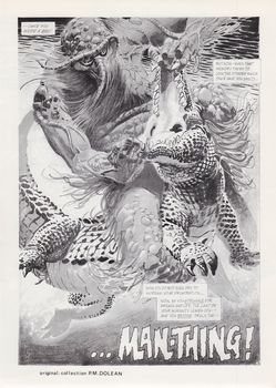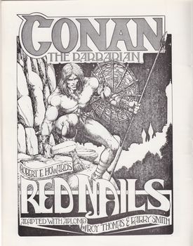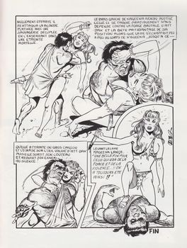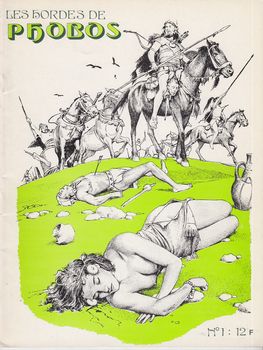 remarques: | les hordes de Phobos, no 1, 4ème trimestre 1974, trimestriel d'épopée fantastique 1/ prélude - les maîtres de l'heroïc-fantasy, un des premiers fut Homère avec son "Odyssée", et de Mary Shelley à Edgar Poe en passant par Burroughs, Howard et Lovecraft, description de séries genre épopée fantastique tel que: - les séries anticipation et angoisse de Fleuve Noir - les récits de J.R. Tolkien (1937) avec the Hobbit et lord of the ring - les séries Planète (1965) qui publia le premier épisode de Conan, the Barbarian by Howard (et son pendant Baldric, the barbarian) ainsi que les séries Galaxie et Opta 2/ Conan, the Barbarian by Crom = le juron favori de Conan, commentaires sur les publications "savage tales" de Conan, première publication de Savage Tales le 1.5.1971 publié par Marvel, dessin by Barry Windsor-Smith avec comme titre "red nails", puis Ka-Zar, l'homme de la jungle dès le no 14, 3/ épisode avec Kageena, reine de la jungle dans "bataille pour un gîte" >> fascicule qui se voulait du heroïc-fantasy version française, édité par Futuropolis, mais qui s'arrêta au no 2 (novembre 1975), fascicule avec quelques articles intéressants, mais malheureusement uniquement en noir&blanc annexes - couverture du fascicule - planche Conan by Barry Windsor-Smith - Man-Thing - une page de Kagheena |