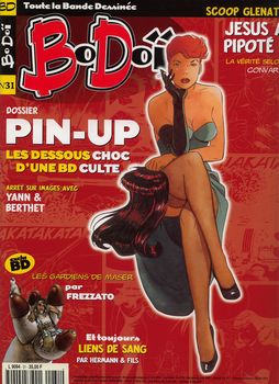 remarques: | fascicule BoDoï no 31 de mai 2000 sur les pin-up avec divers articles dont 1) le beau geste de Bourgeon pour finir l'album "passage de Venus" à la mort subite de Dethorey >>> voir Information 2) interview de Convard sur le triangle secret 3) dossier pin-up - définition: de pin (en anglais épingler) = fille sexy en photo ou en dessin à épingler sur les parois d'une chambre ou ailleurs, les pin-up célèbres dans la bd (parmi tant d'autres): - Betty Boop par Max Fleischer - Betty Page par De Boer - Burma dans Terry et les pirates par Milton Caniff (+ male call) - Dorothy "Dotty" dans la série Poison Ivy et dans "pin-up" par Berthet - pin-up est une série de bande dessinée créée par Berthet & Yann, située dans le contexte de la seconde guerre mondiale, de la guerre froide et de la guerre du Viêt Nam, elle mêle réalité (modèle de pin-up, guerre…) et fiction, avec de multiples clins d'œil à l'histoire du cinéma et de la bande dessinée, - cette série nous narre les aventures chaotiques de Dorothy Partington, alias Dottie; au début jeune fille terriblement naïve et prête à tout pour son "Joe chéri", mais au fil de ses aventures, son caractère se renforcera et dévoilera une personnalité forte et très attachante - la femme qui personnalisa le plus la pin-up américaine fut probablement l'actrice Rita Hayworth dans "Gilda" par la suite, la pin-up devient un objet de publicité (avec rouge à lèvres et bas-nylon), elle se developpera particulièrement dans l'armée américaine durant la seconde guerre mondiale information A) Pin-up - une pin-up est une représentation de femme, dessinée ou photographique, dans une pose attirante ou "sexy", d'où l'expression anglo-saxonne de "pin-up girl" qui pourrait se traduire en français par "jeune femme épinglée au mur" - le mot est employé pour la première fois en 1941, depuis leur apparition, les pin-up sont restées un symbole de charme et d'érotisme, régulièrement remis au goût du jour - c'est seulement au début des années 1940 que le mot pin-up est utilisé afin de décrire ces représentations accrochées aux murs, durant la seconde guerre mondiale, les pin-up connaissent un très large succès, non seulement auprès de la population, mais surtout chez les militaires,notamment chez les G.I. des représentations de pin-up étaient fréquentes dans leur paquetage et certains pilotes faisaient même peindre l'avant de leur avion à leur effigie, il s'agit alors de nose art - un grand nombre de ces dessins et photos proviennent du magazine hebdomadaire Yank, the Army Weekly, leur succès continue d'augmenter et durant les années 1950, commence l'âge d'or des pin-up, principalement aux États-Unis, - on peut notamment citer Gil Elvgren, illustrateur emblématique de cette période et à cette époque, elles apparaissent sur des magazines, journaux, posters, calendriers ou des "cartes d'arts", petites vignettes à collectionner qui auront participé à leur popularisation, les pin-up sont également appréciées des camionneurs qui apposent leurs images en tôle découpée sur la calandre de leurs véhicules, plusieurs de ces représentations sont d'ailleurs actuellement recherchées par les collectionneurs Information B) passage de Venus en 1769, Vénus doit passer devant le soleil, cet évenement ne sera visible que sous les tropiques, c'est le récit historique de l'expédition lancée et mêlé à une histoire d'amour, Philibert Commerson, médecin naturaliste du roi, fait partie d'une expédition lancée par Louis XV pour observer le passage de la planète Vénus devant le soleil (ce qui permettrai d'estimer la distance Terre-Soleil), il est aussi chargé de profiter de ce voyage autour du monde pour étudier les trois règnes de la nature: minéral, végétal, animal, ravi d'un tel honneur, et surtout d'une telle aubaine pour un homme de science comme lui, Commerson fait ses bagages et recherche un assistant, en essayant d'oublier qu'il laisse derrière lui sa servante et maitresse, Jeanne celle-ci décide de ne pas se laisser faire et embarque avec lui, déguisée en son assistant suite au décès de Déthorey (1999), la série ne fut plus continuée mais Bourgeon finira le tome deux commencé par Déthorey |