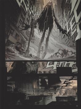 remarques: | Pater tenebrarum (le père des ténèbres?) ce troisième et avant-dernier tome de Prophet s’ouvre sur une douloureuse prise de conscience, Jack Stanton, héros égoïste et irresponsable, dépasse sa condition de victime pour accepter sa part de responsabilités dans la destruction du monde, il devient l'être immoral par définition: celui qui emmena l'Humanité dans sa faute, Stanton réagit enfin et donne à cette aventure fantastique un véritable second souffle, l'heure est à l'action mais on voit difficilement comment l'auteur va se dépêtrer de ce récit petit résumé pour sauver le monde, Jack doit acquérir le pouvoir contenu dans une stèle, sinon les survivants deviendront démons à leur tour et après bien des difficultées dont avoir sauvé la vie d'Athanaîs et échappé au démon hurleur, Jack Stanton sera confronté à une stèle démoniaque en train de se réanimer Matthieu Lauffray, en architecte de fin du monde, guide ses héros à travers les ruines de ce que fût autrefois New York, refuge d’anciens Dieux et de leur sinistre descendance, la métropole est désormais vide de toute présence humaine, seuls quelques fantômes sillonnent encore les avenues la nuit tombée, à la suite de créatures cauchemardesques, les teintes contrastées de cette Terre dévastée chargent l’atmosphère d’un chaos indescriptible et marquant, avec ce 3ème tome, on nage maintenant en plein délire fantastique post-apocalyptique, ce qui contraste énormément avec le 1er tome, un texte super-irréaliste qui ne conduit à rien et qui ne compense même plus le graphisme original de Lauffray, la fin est marquée à suivre mais un autre album ne paraîtra qu'en 2014 (9 ans après) titré "de profundis", mais qui ne sera pas collectionné ici une étoile pour le graphisme annexes - couverture et extrait du tome 3 - couverture du dernier album, tome 4 |