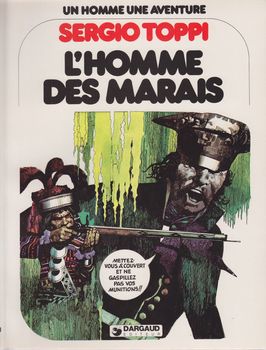 remarques: | dans la collection un homme une aventure première édition Dargaud, tome 13 histoire des derniers résistants indiens de Floride, les Séminoles (qui signifie sauvages) de la tribu des Creek dans les Everglades, les hommes des marais qui refusèrent toujours de se rendre et n'acceptèrent aucun traité de paix ceci est l'histoire de la garnison de Fort Myers près des Everglades, un officier US noir qui a épargné la vie d'un chef séminole, se retrouve à son tour prisonnier de ce même séminole il deviendra le conseiller militaire du chef séminole Halpatter >> p. 15 levée de soleil sur les Everglades >> un scénario humain et toujours un superbe graphisme de Topi information la seconde guerre séminole, également connue sous le nom de guerre de Floride est un conflit qui se déroula de 1835 à 1842 en Floride entre divers groupes d'Amérindiens, connus sous le nom générique de Séminoles, et les États-Unis, elle fait partie d'une série de conflits appelés les Guerres séminoles la seconde guerre séminole, souvent appelée la Guerre séminole, fut la plus coûteuse des guerres indiennes et l'une des plus longues que menèrent les États-Unis elle fut aussi l'une des premières guerres de guérilla, préfigurant sans doute ce qu'allait être les guerres de guérilla au XXe siècle Billy Bowlegs (Holata Micco, Halpatter-Micco, Halbutta Micco ou Halpuda Mikko) en séminole, signifiant "Chef Alligator", né vers 1810 et mort en 1859, est un chef des Séminoles de Floride pendant les seconde et troisième guerres séminoles contre les États-Unis. |