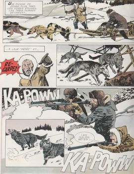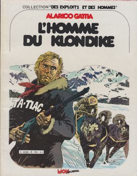 remarques: | dans la collection des exploits et des hommes, c'est la suite de un homme, une aventure édition Mon Journal pour la France, Cepim pour l'Italie 1895, Fort Yukon, Alaska un inconnu, Joe Cortland, arrive à Fort Yukon et après avoir pris la défense du vieux Sam, celui-ci lui révèle l'existence d'un filon aurifère exceptionnel dans la région du Klondike, mais la nature n'est pas tendre pour les chercheurs d'or dans cette région n.b. la Klondike est une rivière canadienne, dans l'ouest du Territoire du Yukon la rivière a donné son nom à la ruée vers l'or du Klondike provoquée par la découverte du métal précieux dans certains de ses affluents en 1896 la mine d'or exploitée par Sam et Joe deviendra célèbre, elle causera l'affluence de nombreux chercheurs d'or qui devront traverser le passage du Chilkoot, tristement célèbre n.b. pendant la ruée vers l'or du Klondike, entre 20 et 30'000 personnes traversèrent le col (1897-1898), un flux continu de personnes l'empruntaient, de jour comme de nuit, et il fallait parfois attendre jusqu'à 4 heures pour pouvoir le gravir, la police montée du Nord-Ouest y établit un poste pour assurer l'ordre, percevoir un droit de passage et s'assurer que chacun ait suffisamment de provisions pour un an, ceci afin d'éviter les famines; en avril 1898, une série de terribles avalanches eurent lieu sur le col Chilkoot, tuant entre 48 et 70 personnes selon les sources Joe deviendra très riche mais après la mort de Sam, il commencera à regretter sa vie aventureuse de trappeur >> une histoire à la Jack London, récit plutôt banal mais graphisme acceptable |