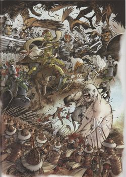 remarques: | Asie Centrale, la capitale des trois contrées est le théâtre d'une bataille épique, Tengiz devenu roi contre la volonté de tous, retarde l'échéance fatale, "initié" par les chamans, il en appelle aux forces surnaturelles la lutte fait rage entre les troupes de Turghul, chef des Ilkhans et ceux de Kamachak, roi d'Enlil, capitale de l'empire du dragon à la toison de feu, le roi, père de Tengiz meurt au combat et c'est Tengiz, un poète qui lui succède, il sera connu sous le nom du roi-poète mais il est déjà confronté à de sérieux problèmes car ses deux frères lui contestent son titre de roi, l'un deux, Kirkouk, ira même à s'allier avec Turghul pour le combat final malgré la supériorité numérique de ses annemis, Tengiz triomphe grâce à l'aide de ses chamans et de leur magie blanche qui protège Tengiz >> p. 32/33 la bataille qui se déroule dans la vallée d'Oxus Tengiz est momentanément victorieux mais il est prédit que Turghul vaincra et règnera 100 jours sur le royaume de Tengiz avant d'être remplacé par l'héritier de Tengiz >> un premier tome pas très convaincant mais encore respectable, une trilogie fantastique et initiatique inspirée des films du cinéaste japonais Akira Kurosawa qui donne à réfléchir sur le pouvoir et la vie n.b mais il n'y a pas beaucoup à réfléchir et heureusement qu'il y a un arbre généalogique sur les protagonistes de cette série, car il est difficile de s'y reconnaître parmi les différents potentats |